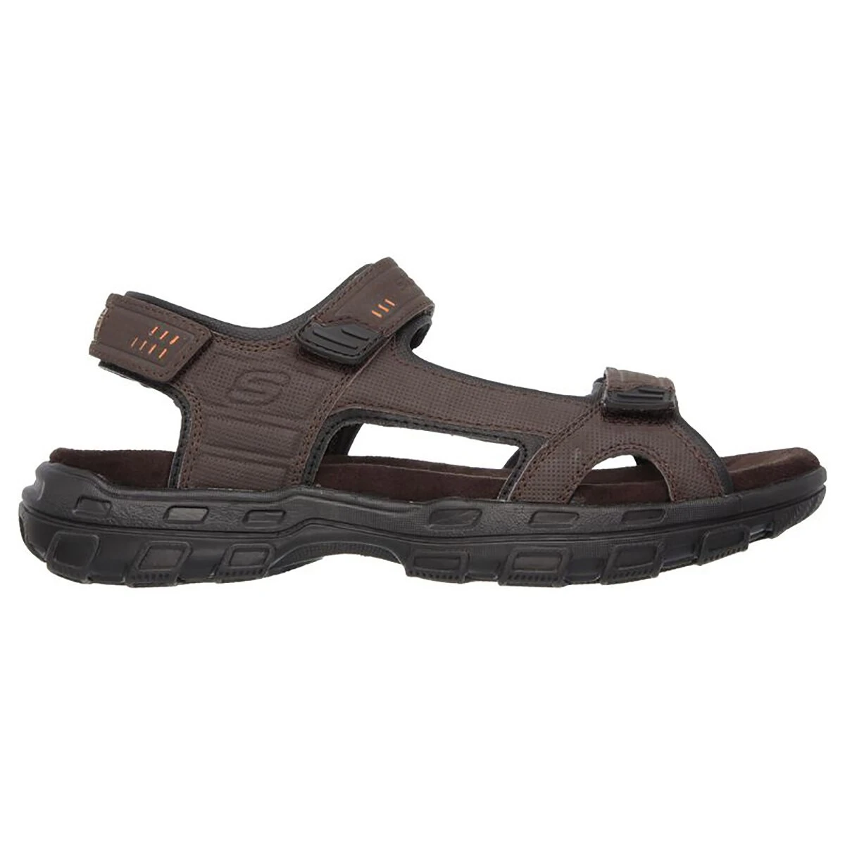 Get outdoors in sporty style and all around comfort with the Mens Skechers Relaxed Fit®: Conner – Louden sandal. Smooth durable synthetic upper in an adjustable casual sport comfort sandal with Memory Foam 360 comfort design.
