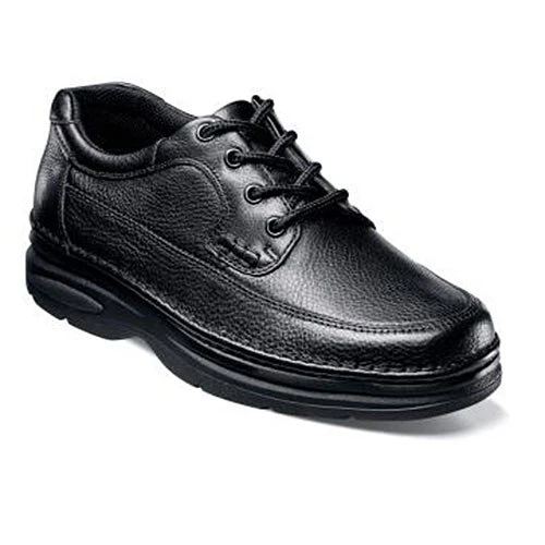 Mens moccasin toe oxfords feature leather upper, comfort gel cushioned insole on a rubber outsole.Also available in Wide Widths.
