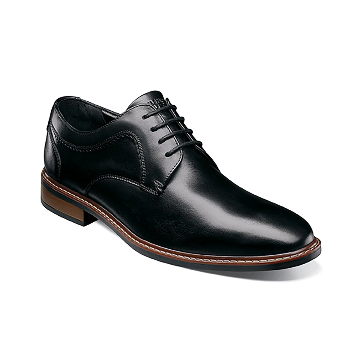 Turn up the volume to your suave style with the Mens Nunn Bush Hayden plain-toe oxfords with lace-up closure. The smooth footwear design features a stacked heel with a leather upper material.