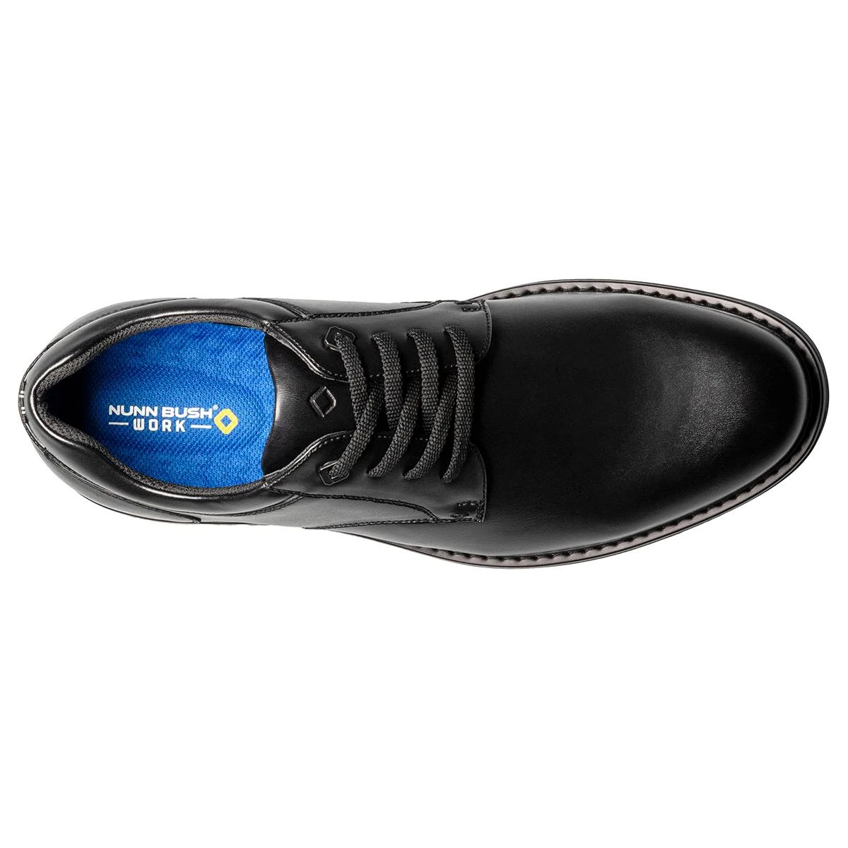 Whoever said you shouldn’t mix work with pleasure never met these Mens Nunn Bush wade work plain toe oxfords. The clean modern design includes safety and comfort features like our NeverWet technology and a durable, non-marking, and slip-resistant rubber sole for all-weather traction. These oxfords also feature a Nunn Bush Easy Care man-made upper, breathable fully padded mesh linings for exceptional moisture management and 360-degree padding, and a removable molded latex foam footbed for added cushioning.Our NeverWet technology is an innovative water and stain guard that rapidly repels liquids to keep fabrics dry and breathable while repelling stains and making cleanup easier to keep your shoes looking crisp and clean.Also available in Wide Widths.
