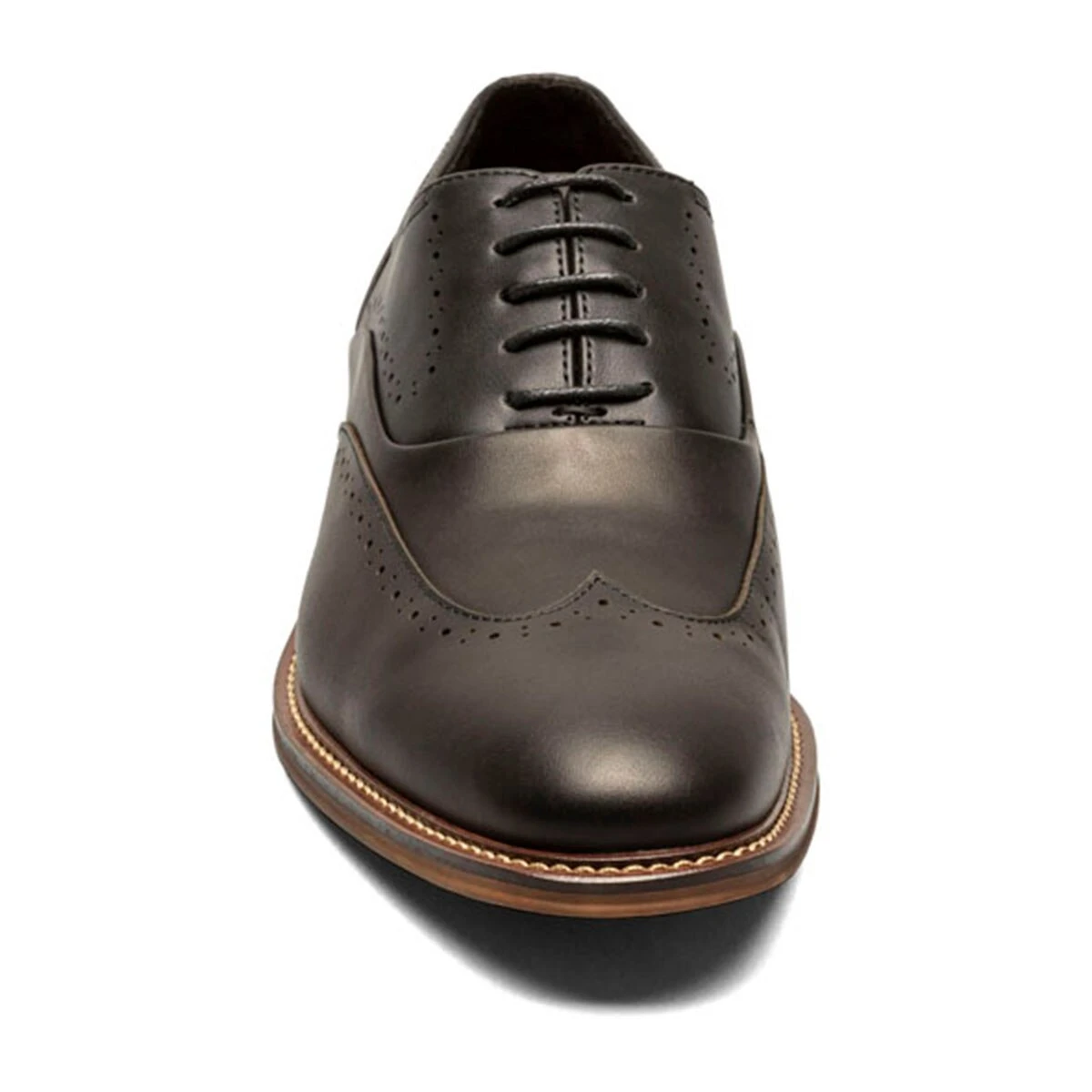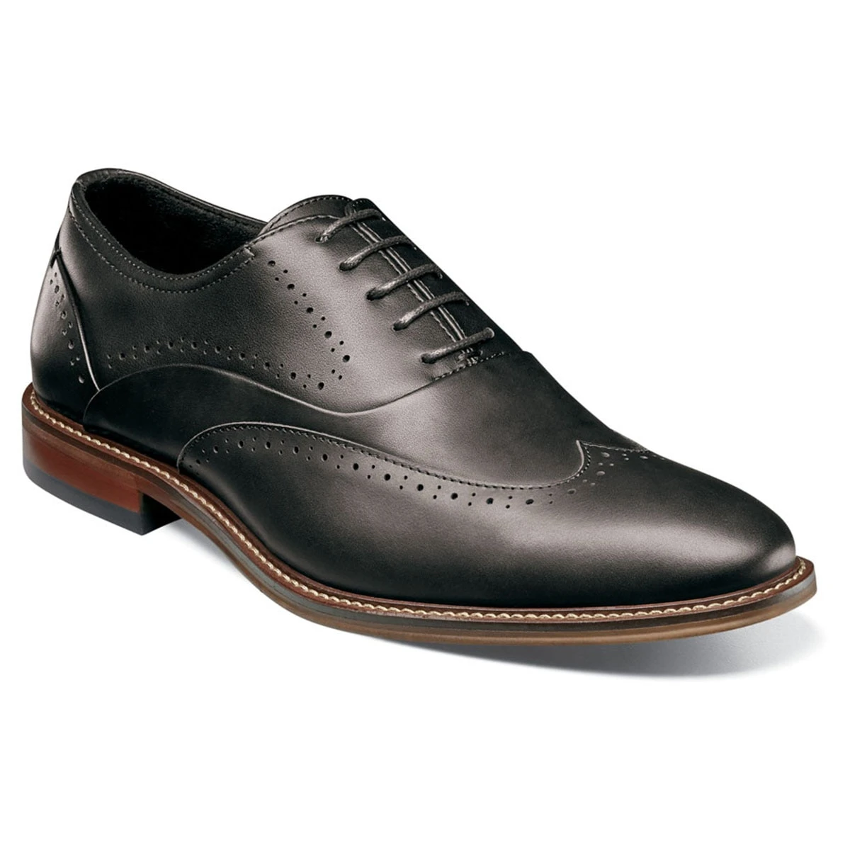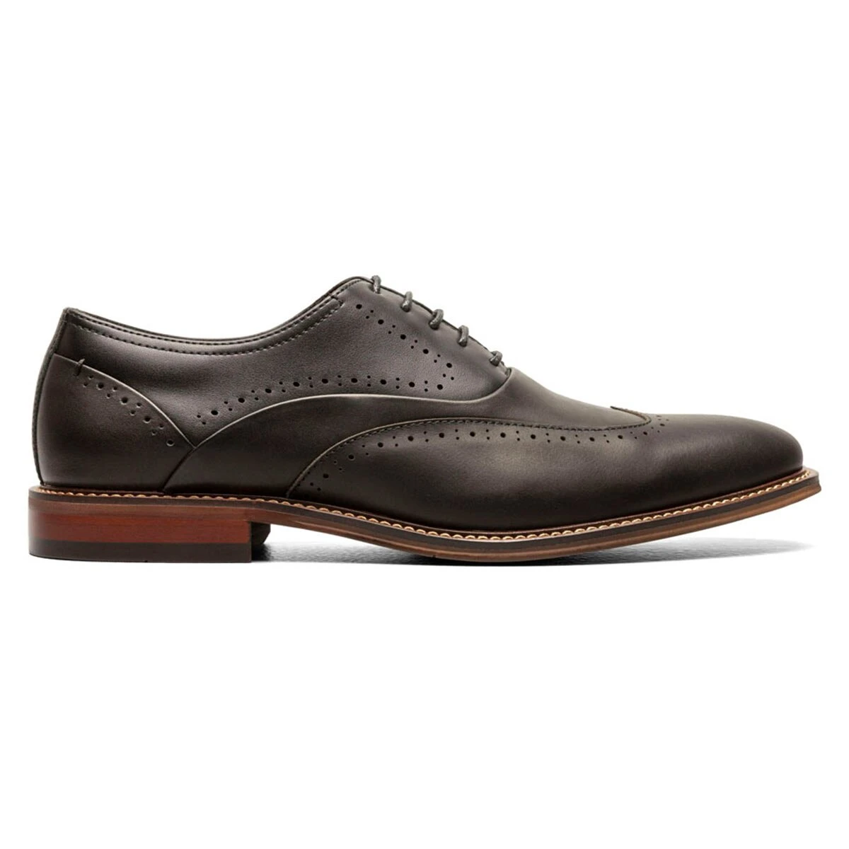 The Mens Stacy Adams Macarthur wingtip oxford features a richly burnished leather upper that is highlighted by two simple lines of perfing and an elongated profile. The versatility of the Macarthur means it can be worn from everything from your best suit to your favorite jeans.