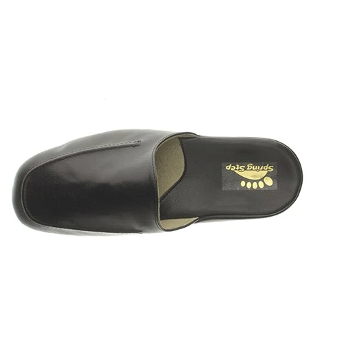 Classic styling in these Mens all-leather indoor Spring Step Nigel slippers. Features a padded leather softly constructed footbed, with non skid coating to give better traction on wood or tile floors. Has a 1″ rubber outsole with leather coating.