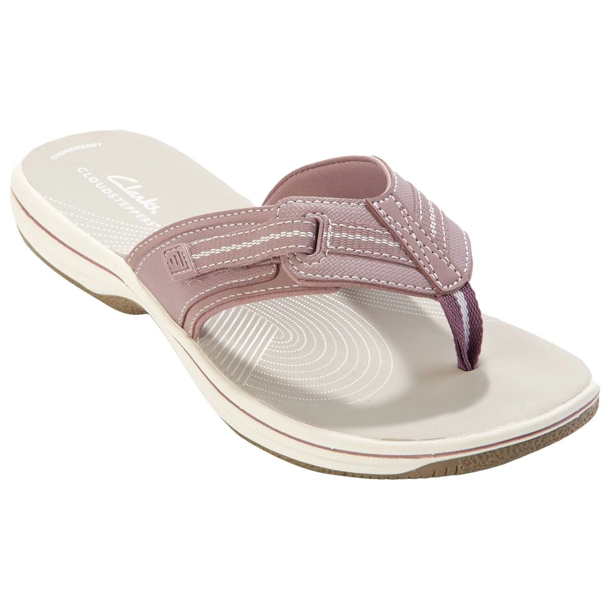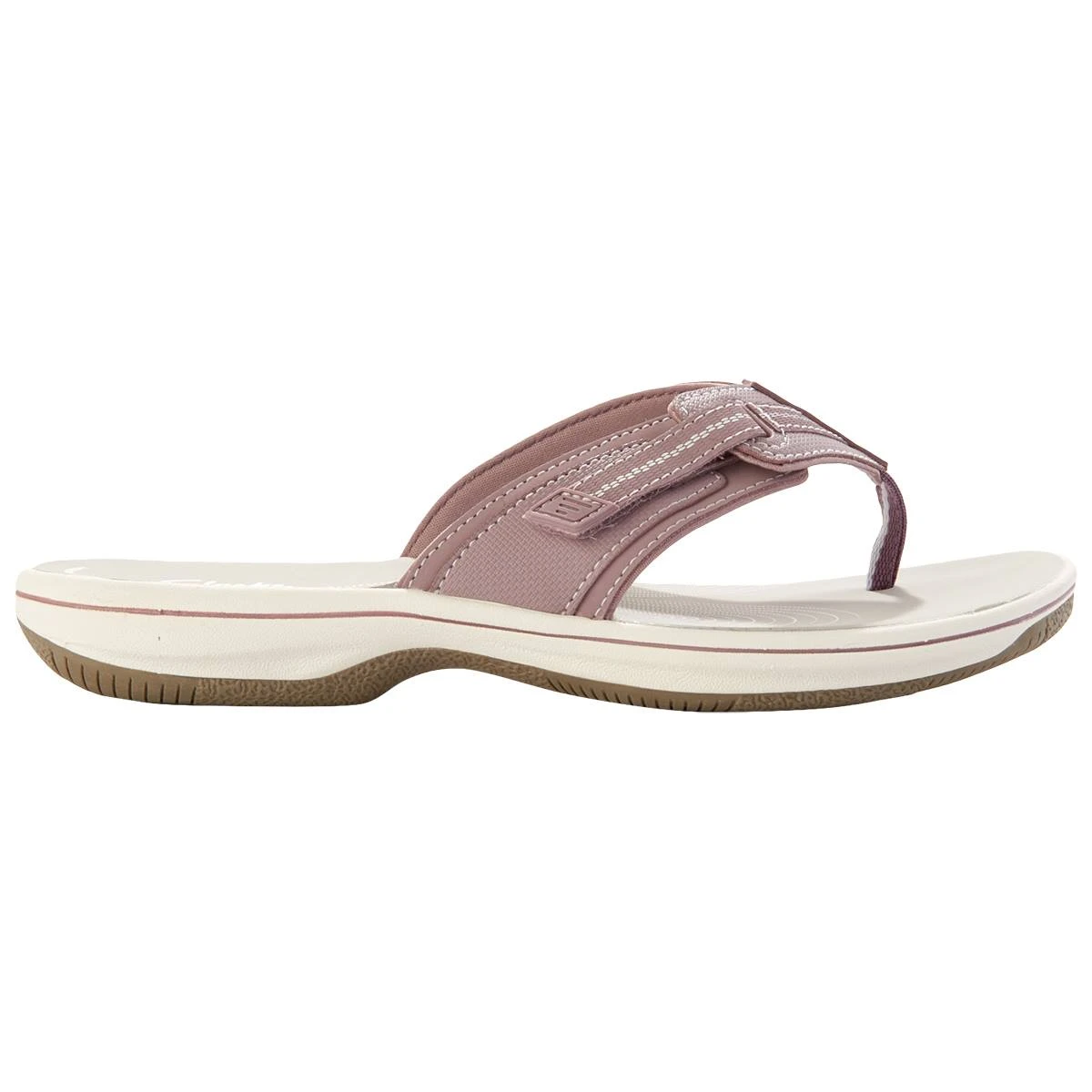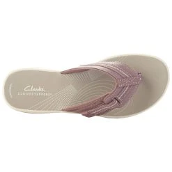 The Womens Clarks® Cloudsteppers™ Brinkley Jazz flip flop sandals offer a hook and loop closure for a secure fit, a cushioned insole, EVA insole, synthetic lining, and a rubber outsole. A great addition to any wardrobe for both style and comfort.