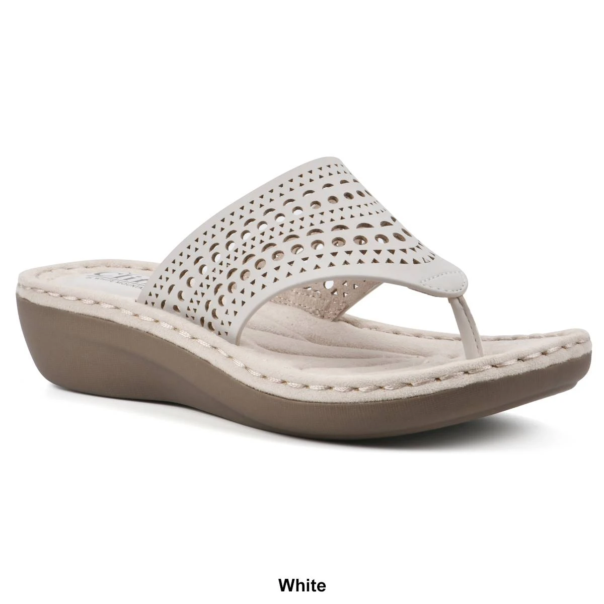 The Womens Cliffs by White Mountain Compact flip flops are perfect for the warm weather. Features a cute perforated design, as well as breathability! This sandal is comfortable through and through. They have a soft cushioned padded insole to make your feet feel happy all day long!