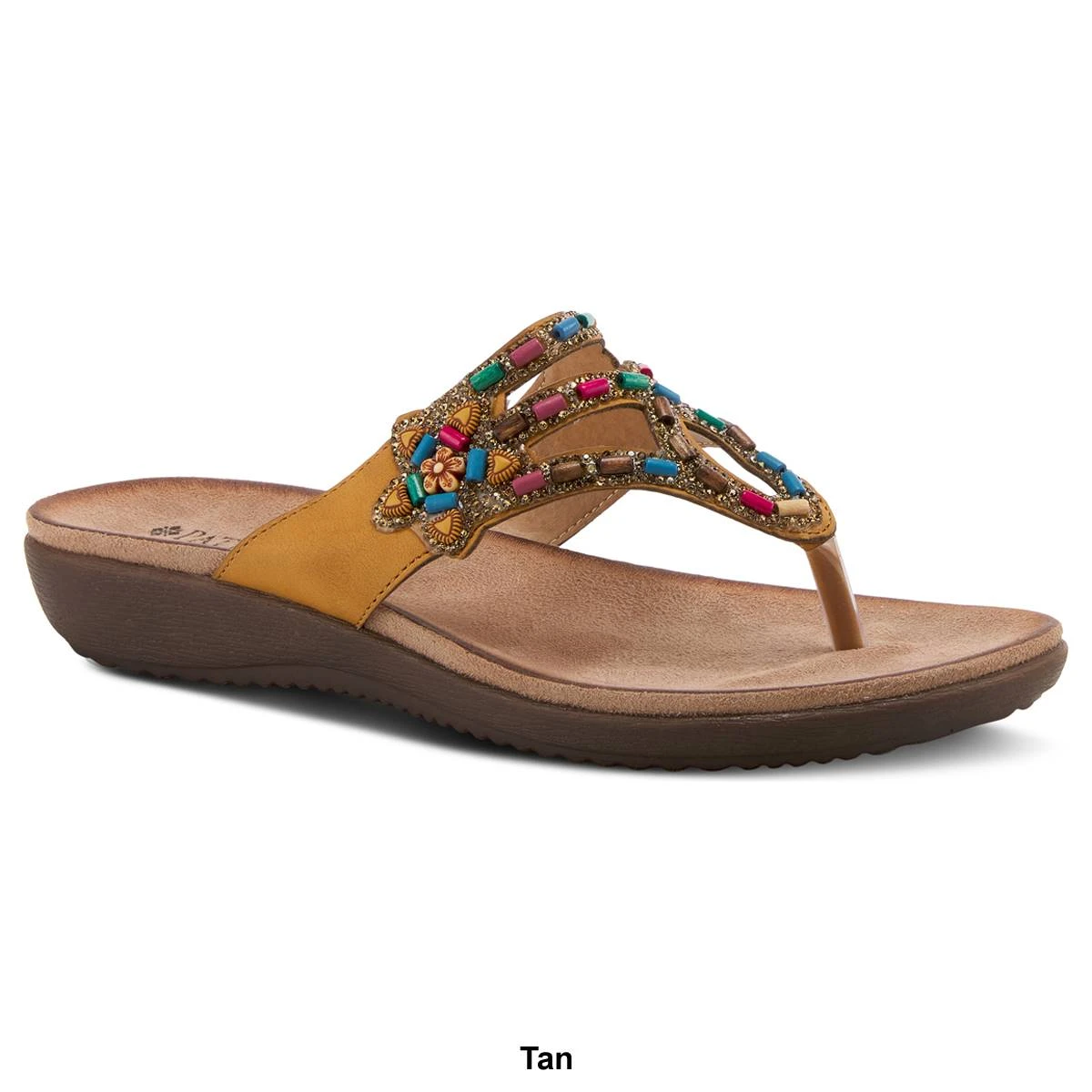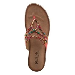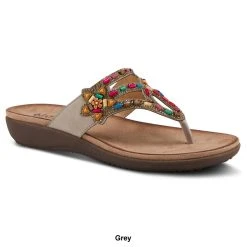 These Womens Patrizia Vizzan Flip Flops are fun and trendy! They feature multicolored wooden barrel beads surrounded by rhinestones for a beautiful look. The soft and cozy footbed along with the flexible sole assures all-day comfort.