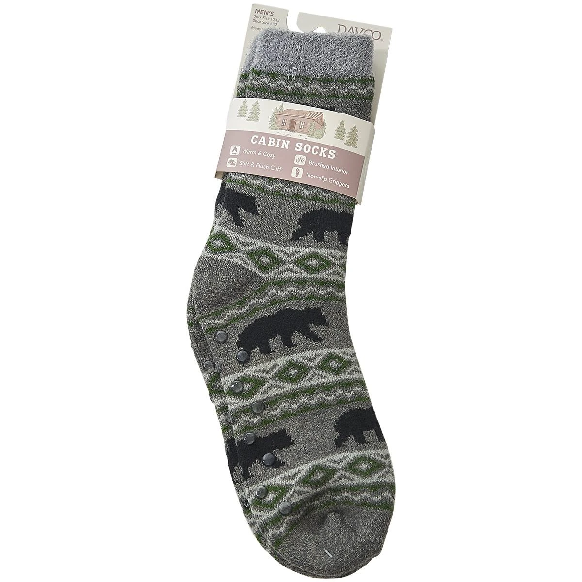 Keep your toes warm with these comfy Mens Davco bear fair isle slipper socks. These socks feature a soft & plush cuff, non-slip grippers, and a brushed interior for added warmth.