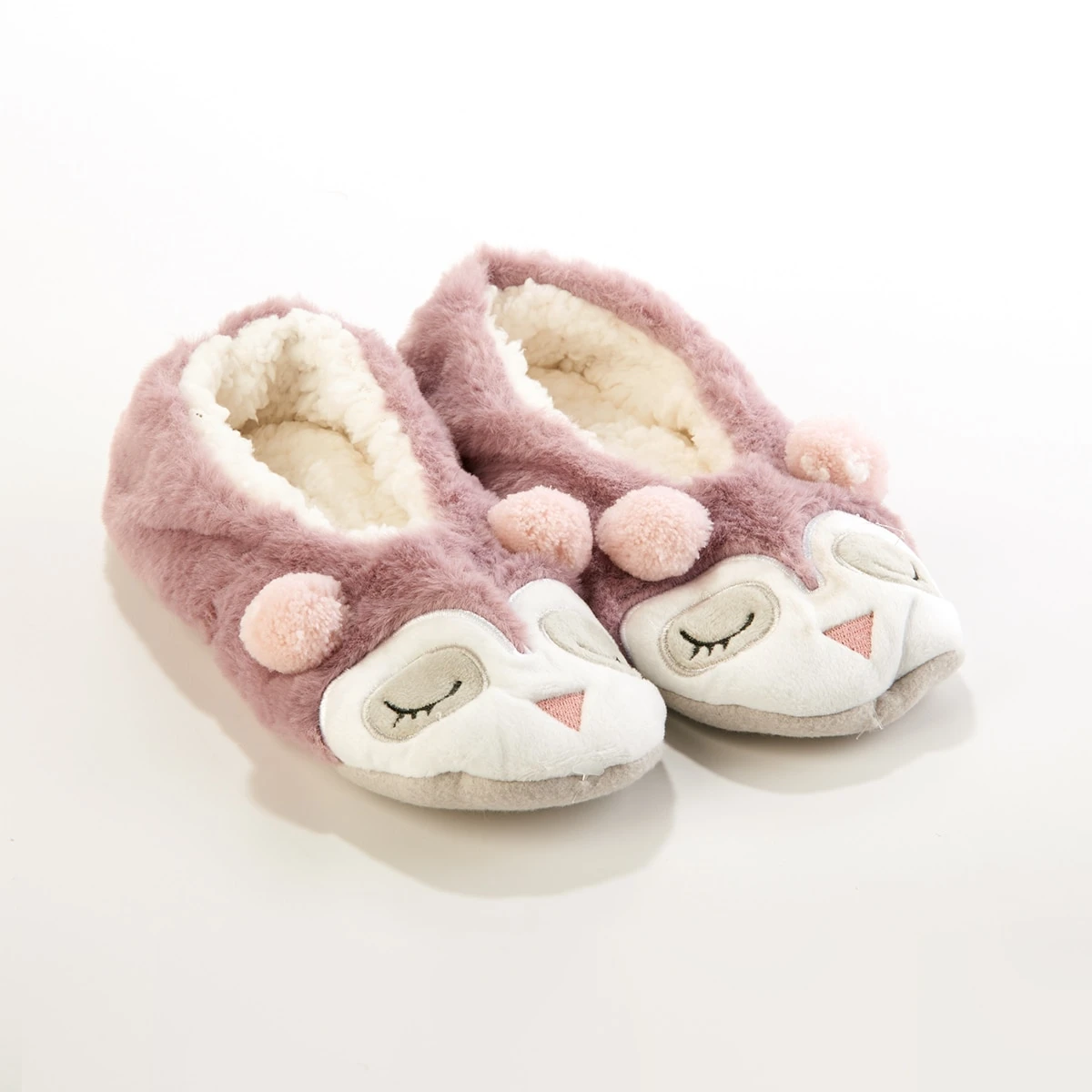 The Womens Capelli New York owl faux fur pull on slipper socks will keep your feet warm. Featuring 3d poms, metallic yarn embroidery, and grippers on the bottom.