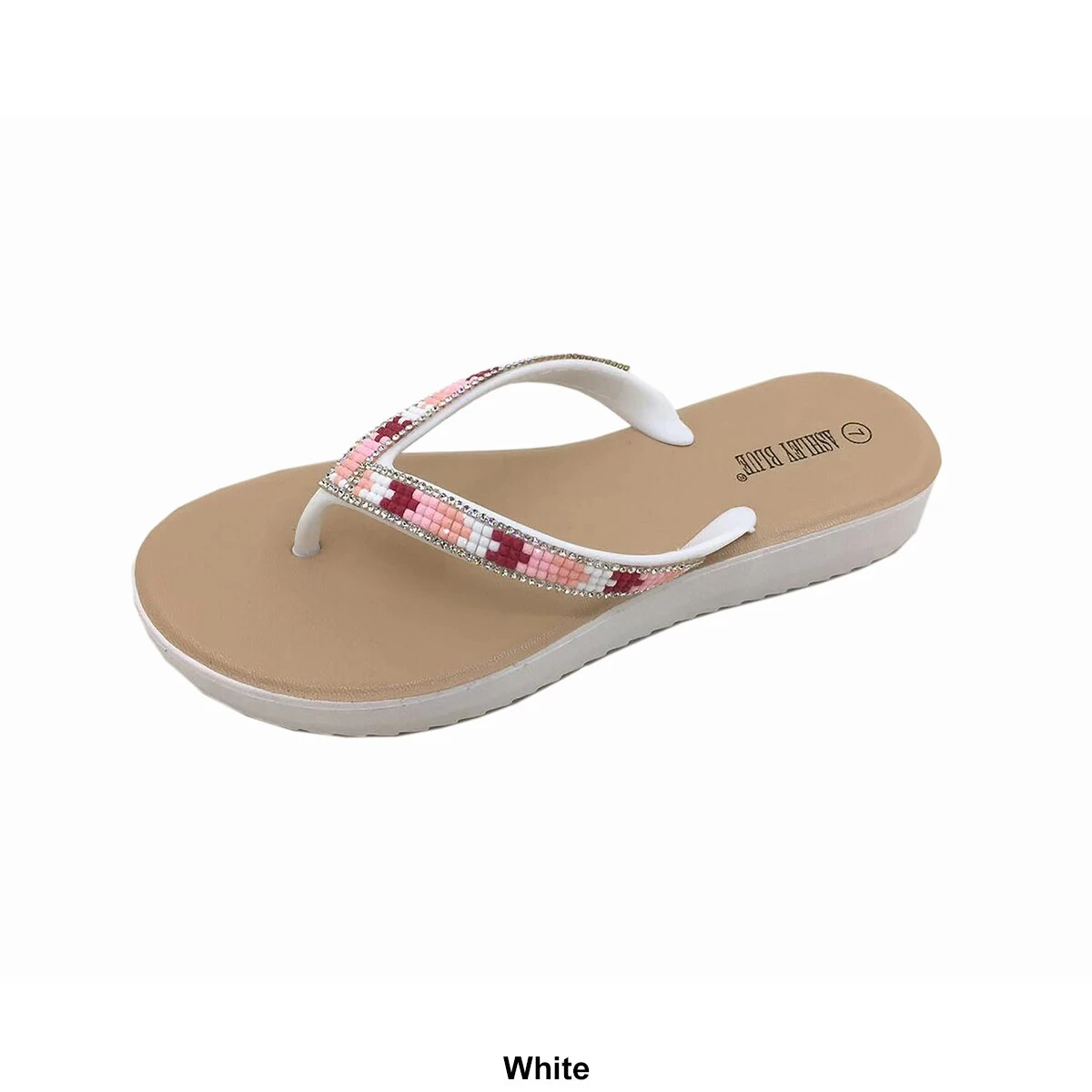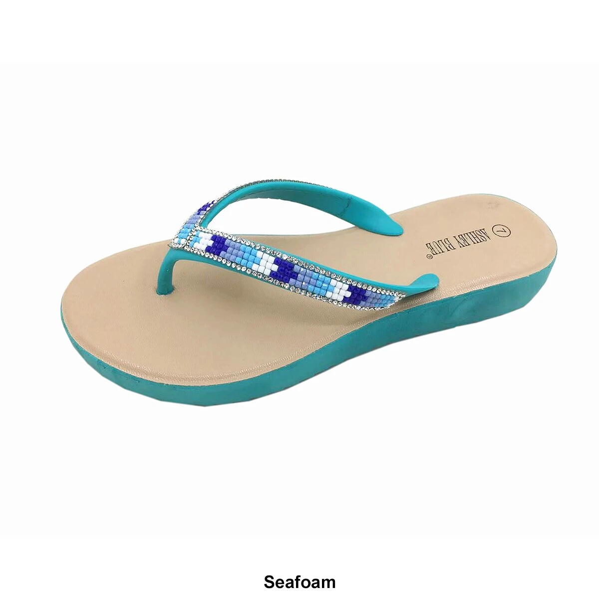 Womens Ashley Blue beaded rhinestone flip flop sandals are for the fashionable free spirit within us all. We are about being spontaneous, and daring with style choices. From summer days to date night, these wedge bottom jellies are essential for iconic comfort.