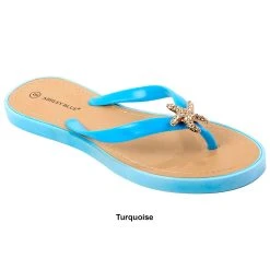 The Womens Ashley Blue starfish flip flop jellies are for the fashionable free spirit within us all. We are about being spontaneous and daring with style choices. From summer to date night, these flat bottom jellies are essential for iconic comfort.