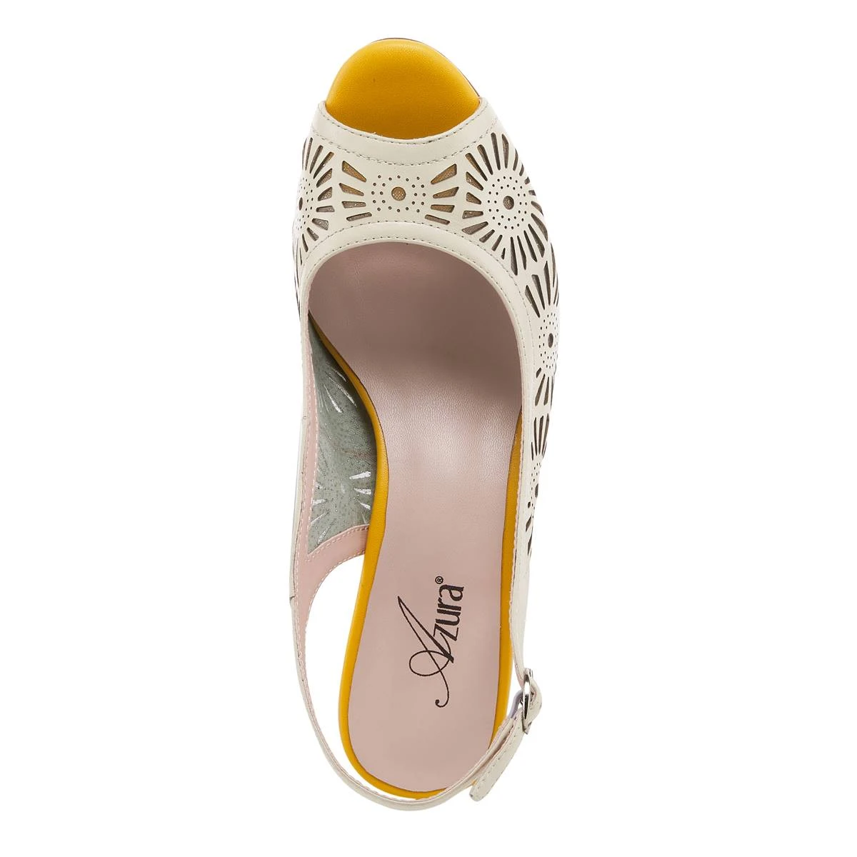 These Womens Azura Engagement slingback sandals pair well with any outfit. Features an underlying silver metallic mesh and six-sided architectural heel.