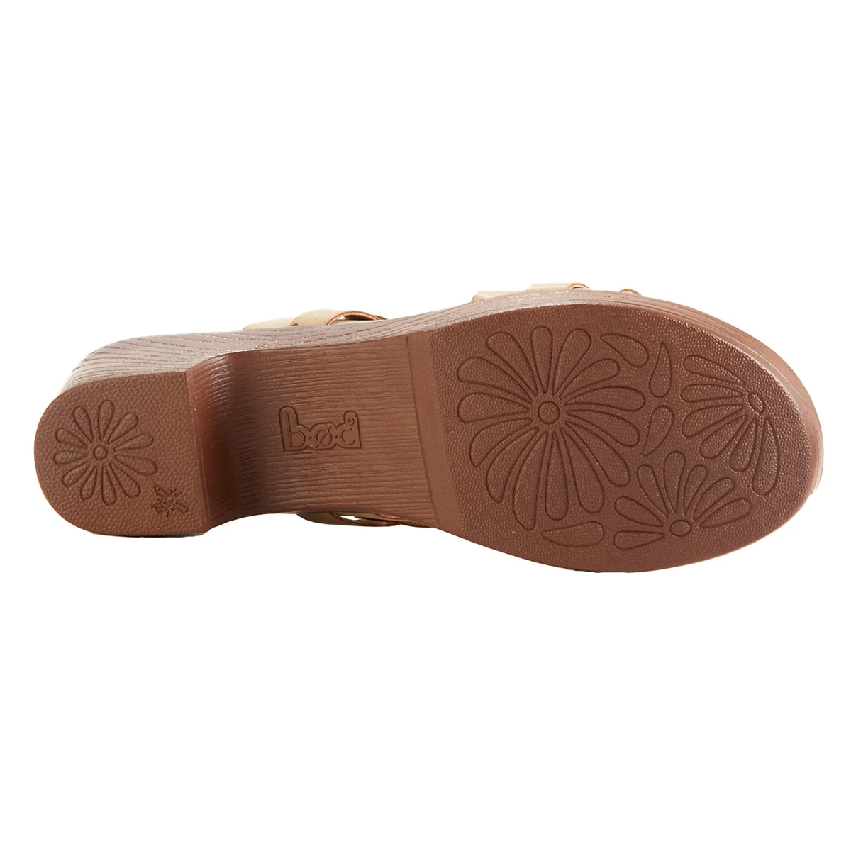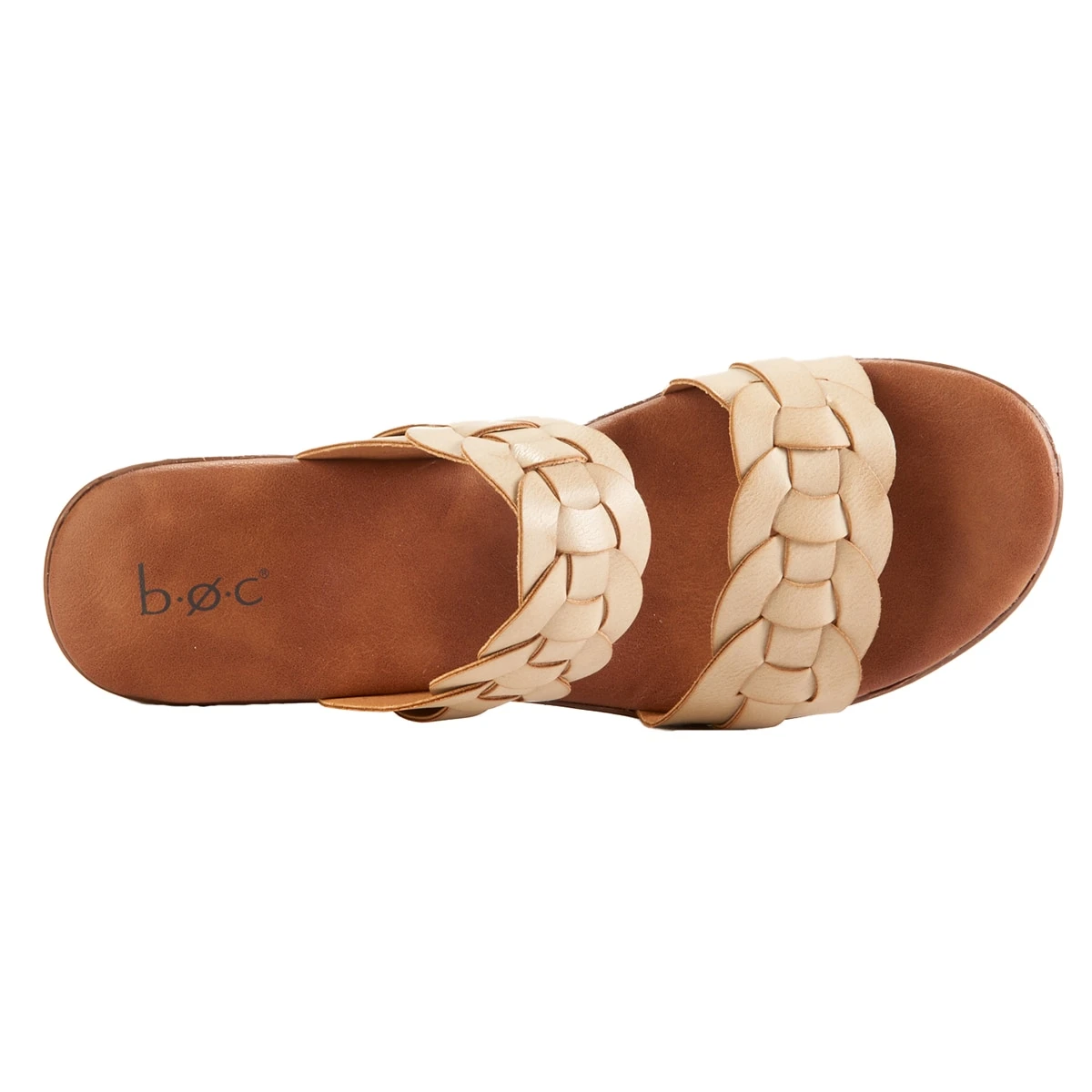 This Womens B.O.C. Jillian slide sandals offer a faux woodgrain heel for a chic and trendy look. The exterior is detailed with a chunky braided strap that adds style to any summertime outfit.
