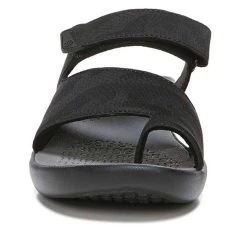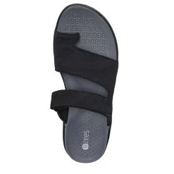 Keep calm and carry on in these Womens BZees carry on strappy sandals. Features stretch fabric upper, open toe with a toe loop, slip-on fit, and adjustable hook-and-loop closure. Your feet need beds just as much as the rest of your body does, and these sandals are perfect for that.