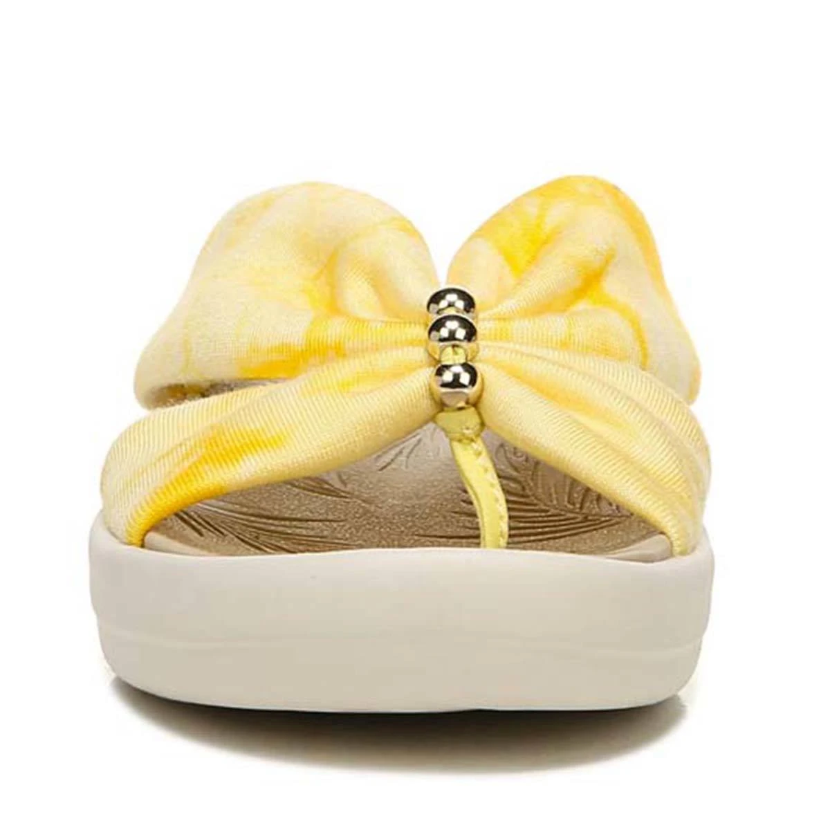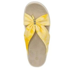 These Womens BZees Promise tie dye thong sandals are the cutest, comfiest sandals ever. Features stretch fabric upper, open toe, slip-on fit, rolled toe thong post, and ruched strap design with metallic beaded accents. You’ll feel weightless, energized, and free with these sandals.