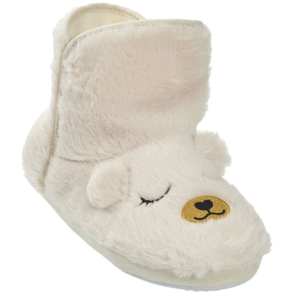 Sit back and relax in cozy comfort with these Womens Capelli New York bear faux fur bootie slippers. These slippers include embroidery, ears, and cozy faux fur lining.