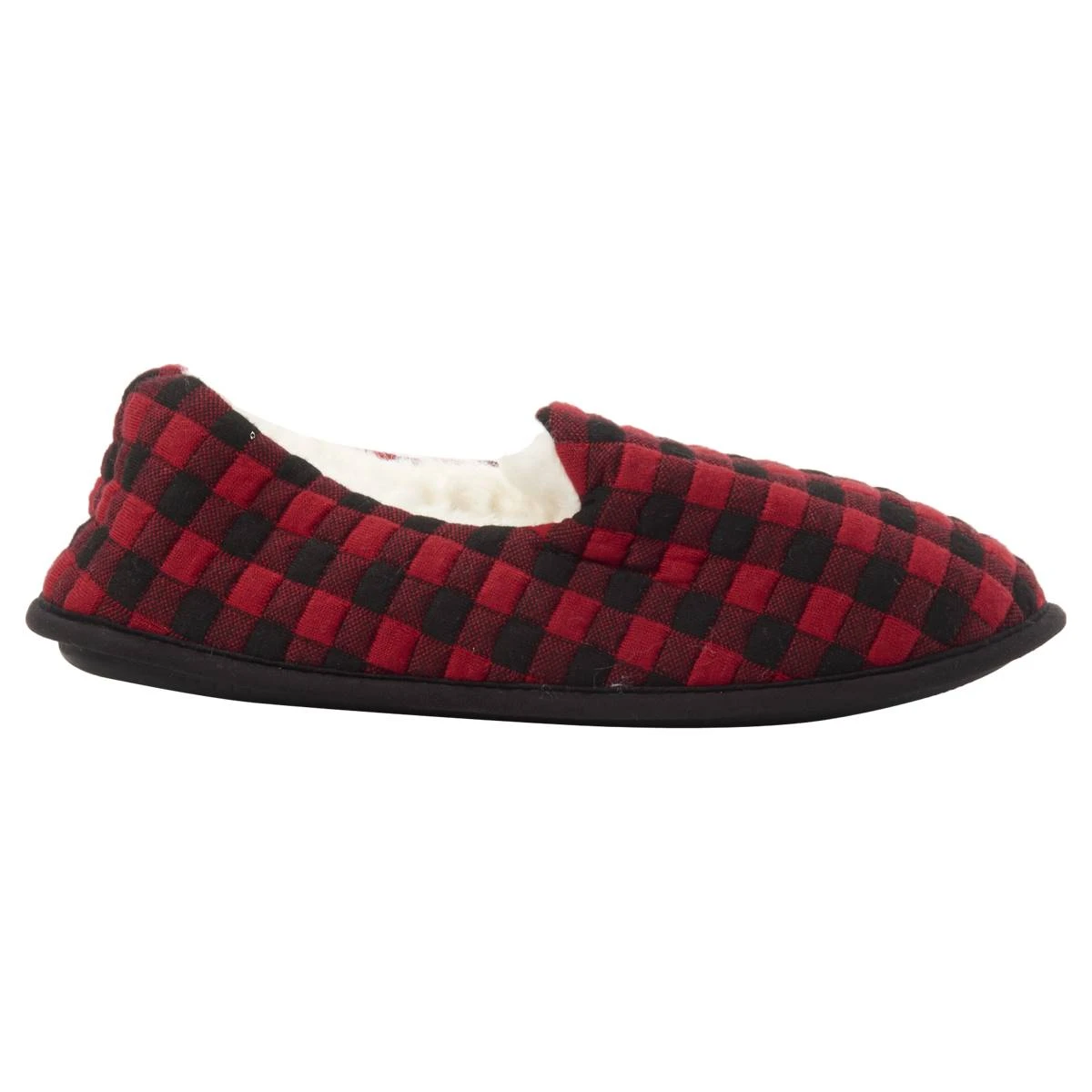 Lounge around in comfort with these Womens Capelli New York quilted buffalo plaid scuff slippers. These indoor slippers include faux fur lining on a faux fur sock and a fabric-covered TPR outsole.