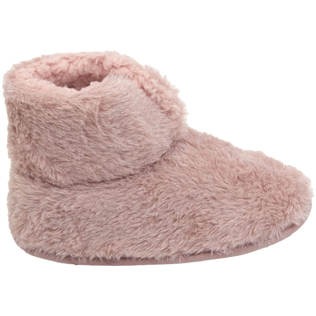 Whether you’re just waking up or winding down for the night, the Womens Capelli New York faux fur and metallic boot slippers keep you cozy and comfortable. These indoor slippers feature faux fur lining and a fabric covered TPR outsole.