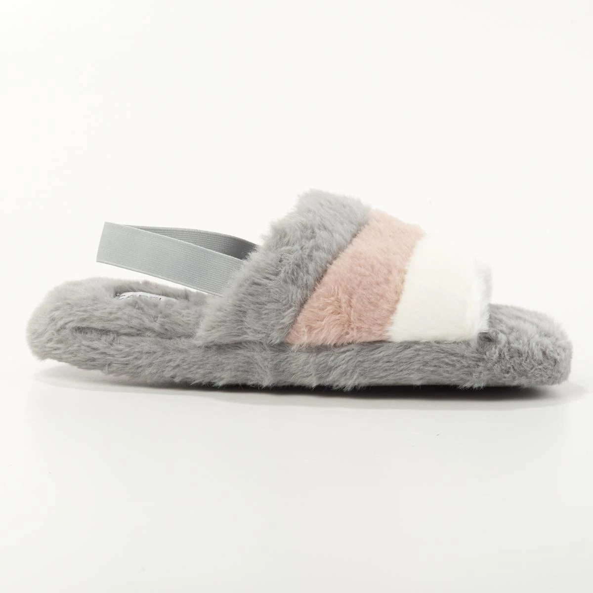 Let your feet relax after a long day with these Womens Capelli New York striped faux fur slide slippers. These indoor slippers include an elastic back strap and twill with dots outsole.