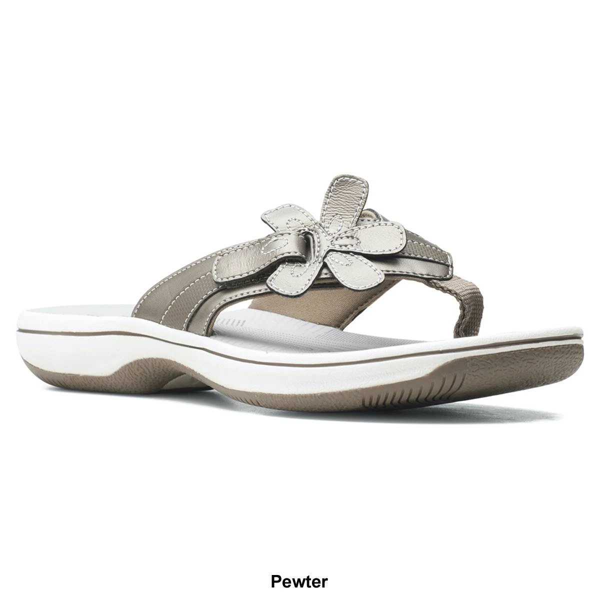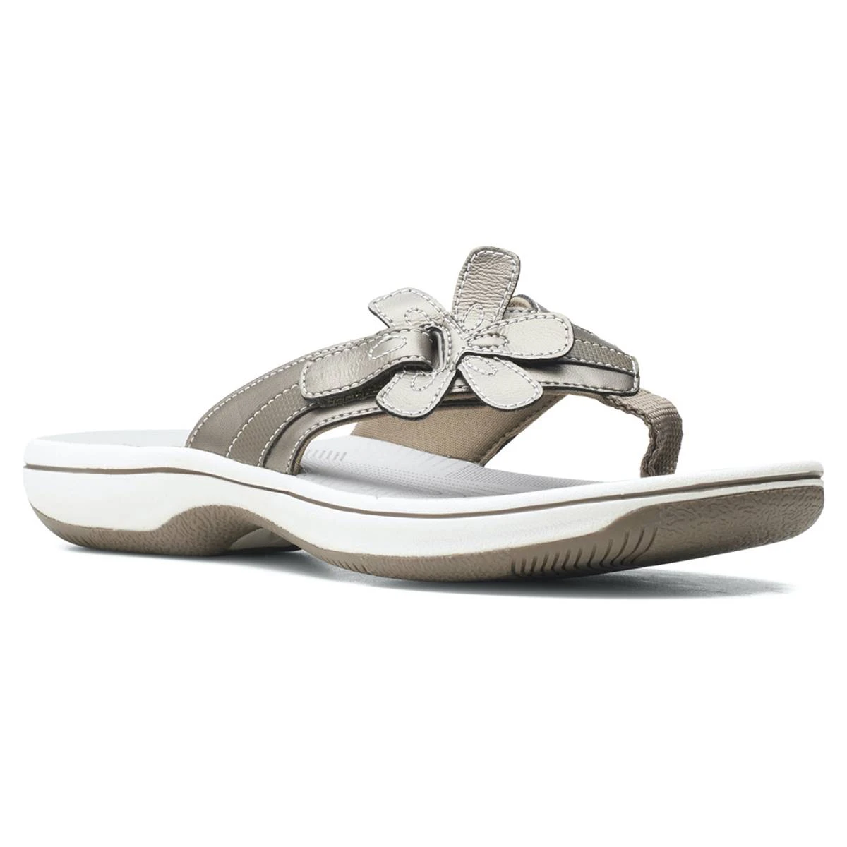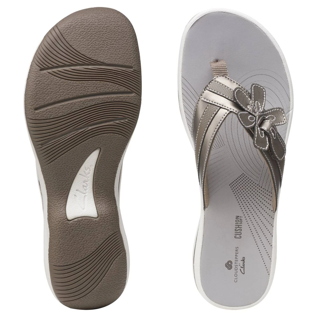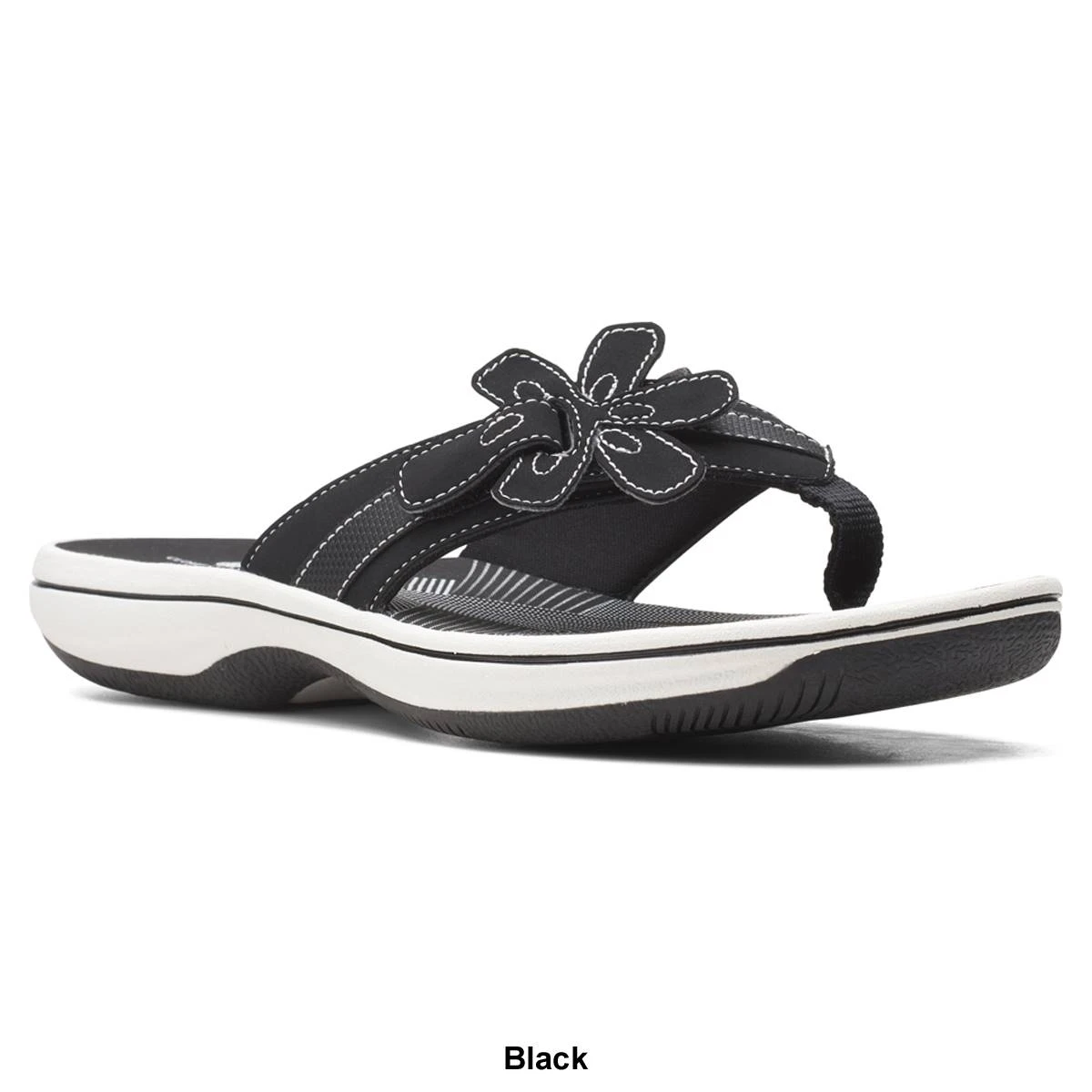 Pack light, step lighter. The Cloudsteppers™ Brinkley Flora flip-flop sandals comes in classic black patent for the ultimate in versatile summer wear. A cushioned EVA midsole and footbed support protect the foot from shells and beach pebbles without adding any extra weight.