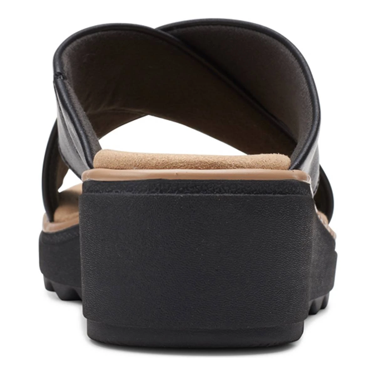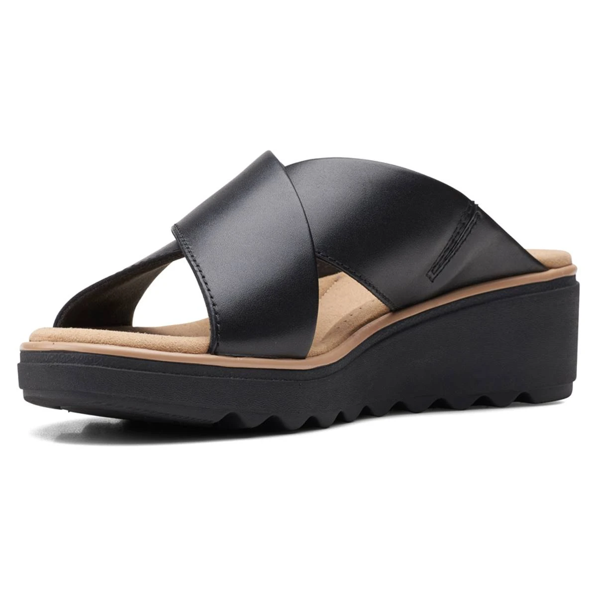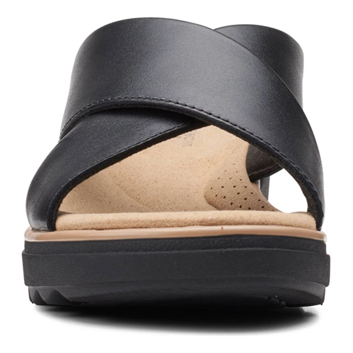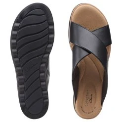 These Womens Clarks® Collections Jillian Gem slide sandals are so sleek, and so modern. It is simple, secure, and stylish in smooth black leather with underfoot cushioning. You’ll feel nothing but comfortable.