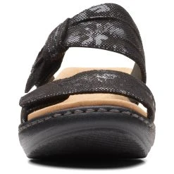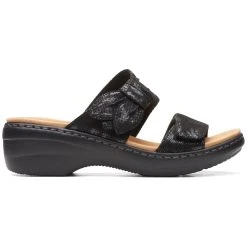 Step into summer with these Womens Clarks® Collections Merliah Charm slide sandals. They feature molded cushioning and arch support set on an airy sole, with a soft and adjustable flower-detail leather upper for a classic look.