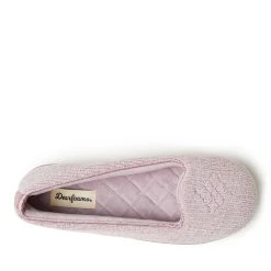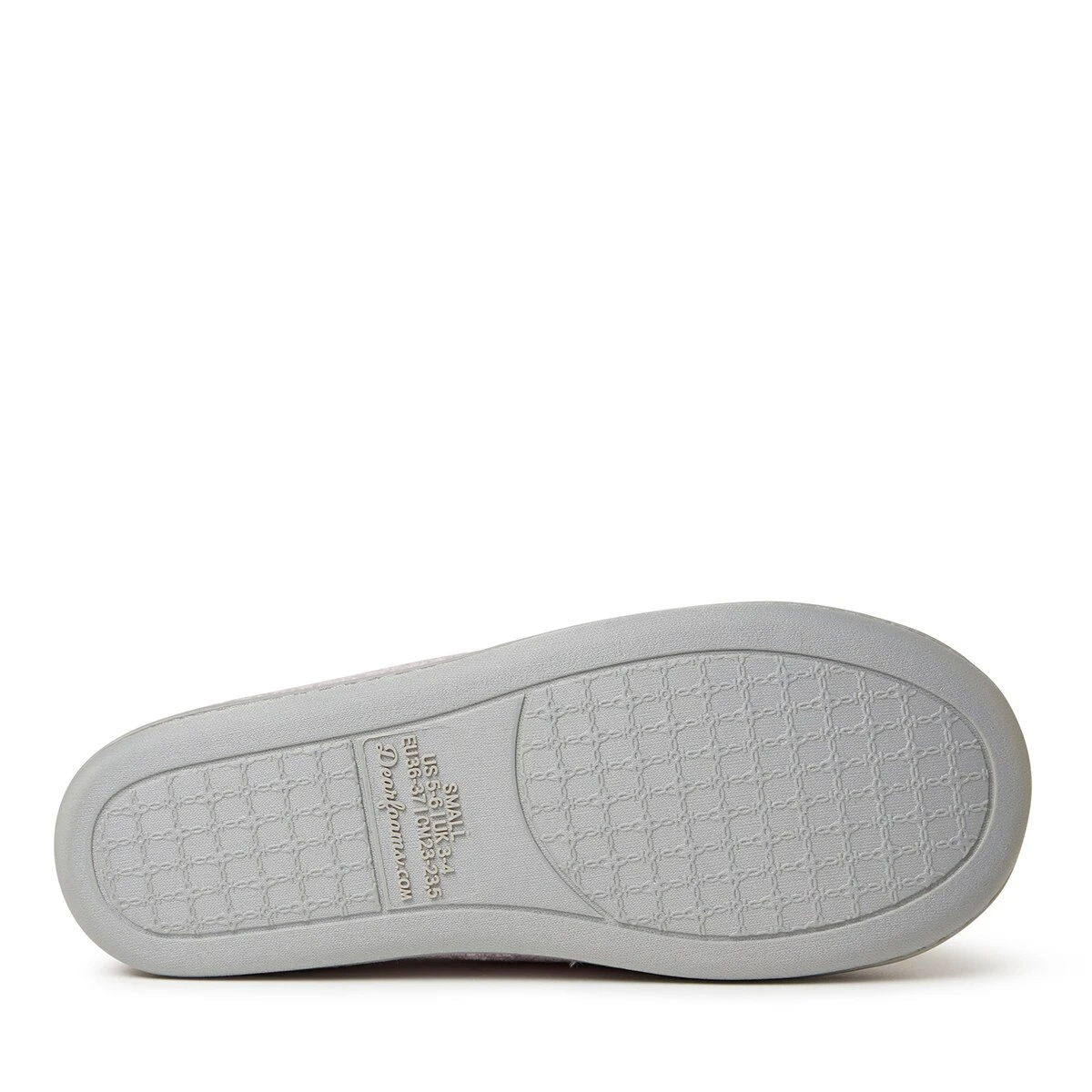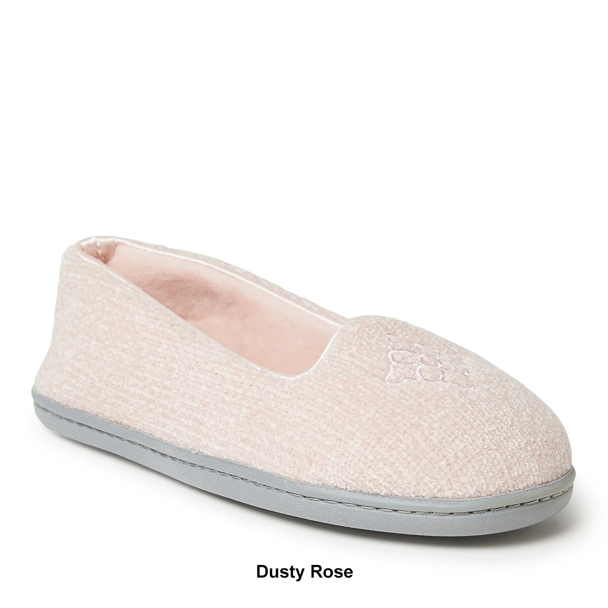 The Womens Dearfoams® luxe chenille closed back slippers feature a quilted, plush microfiber velour sock. The multi-density cushioned insole has gel-infused memory foam. Molded TPR indoor/outdoor outsole.