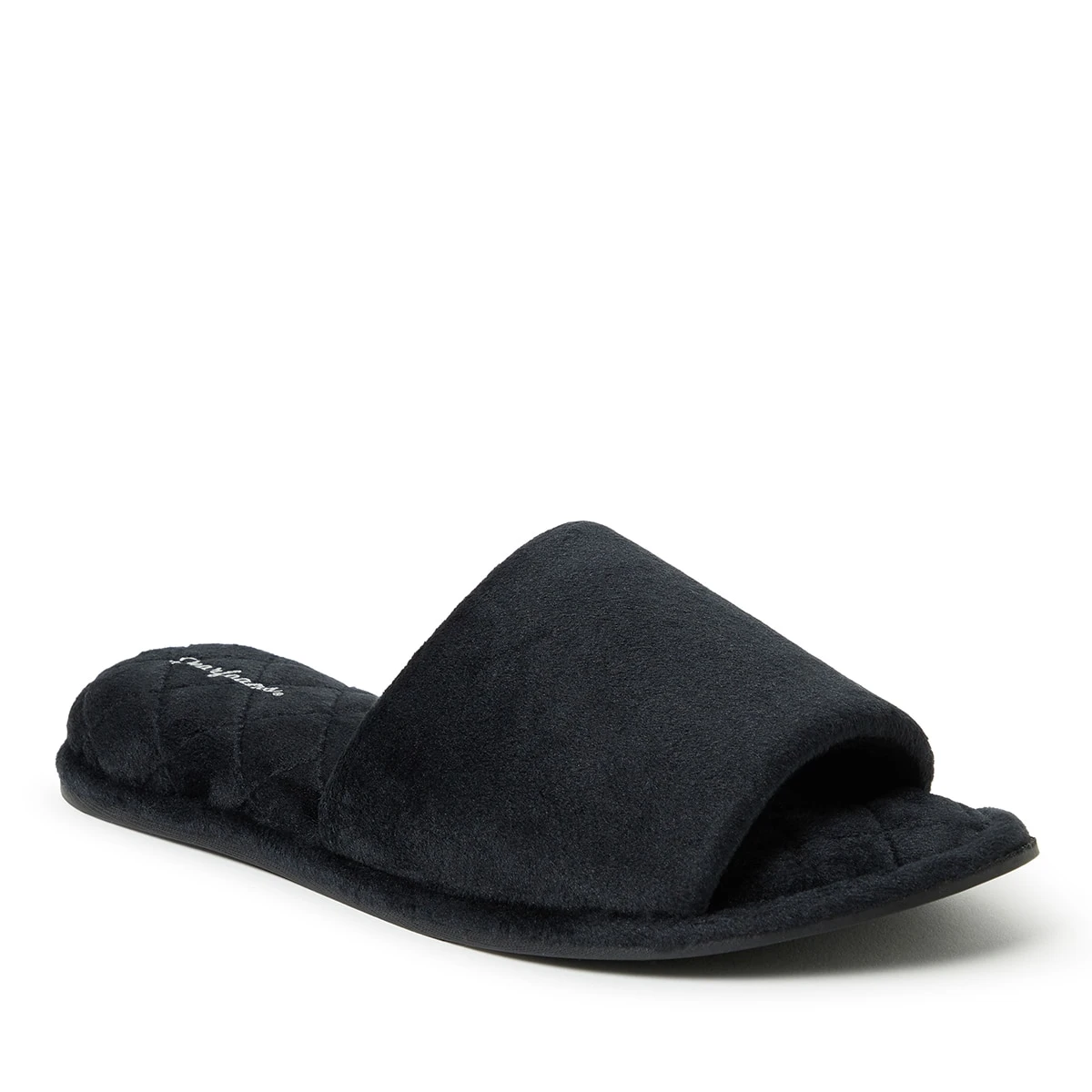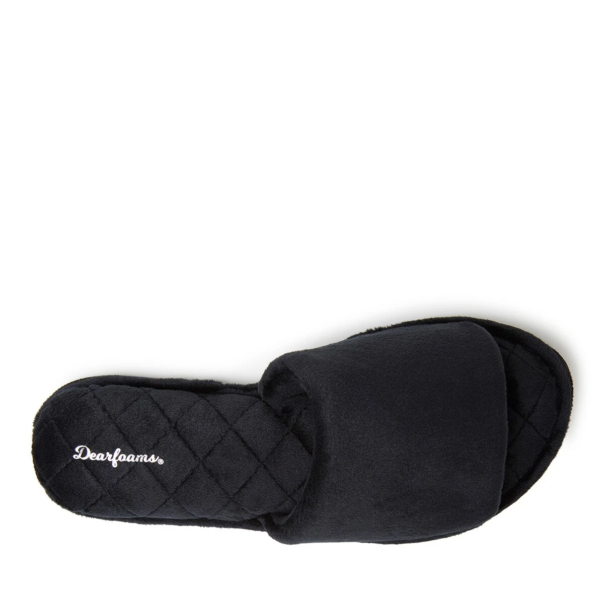 These Womens Dearfoams® microfiber velour slide slippers feature a breathable elastic gore design and are the perfect pick for custom comfort! Cushioned memory foam insoles offer added support where you need it most, and the proven indoor/outdoor outsole makes luxurious lounging an on-the-go option.