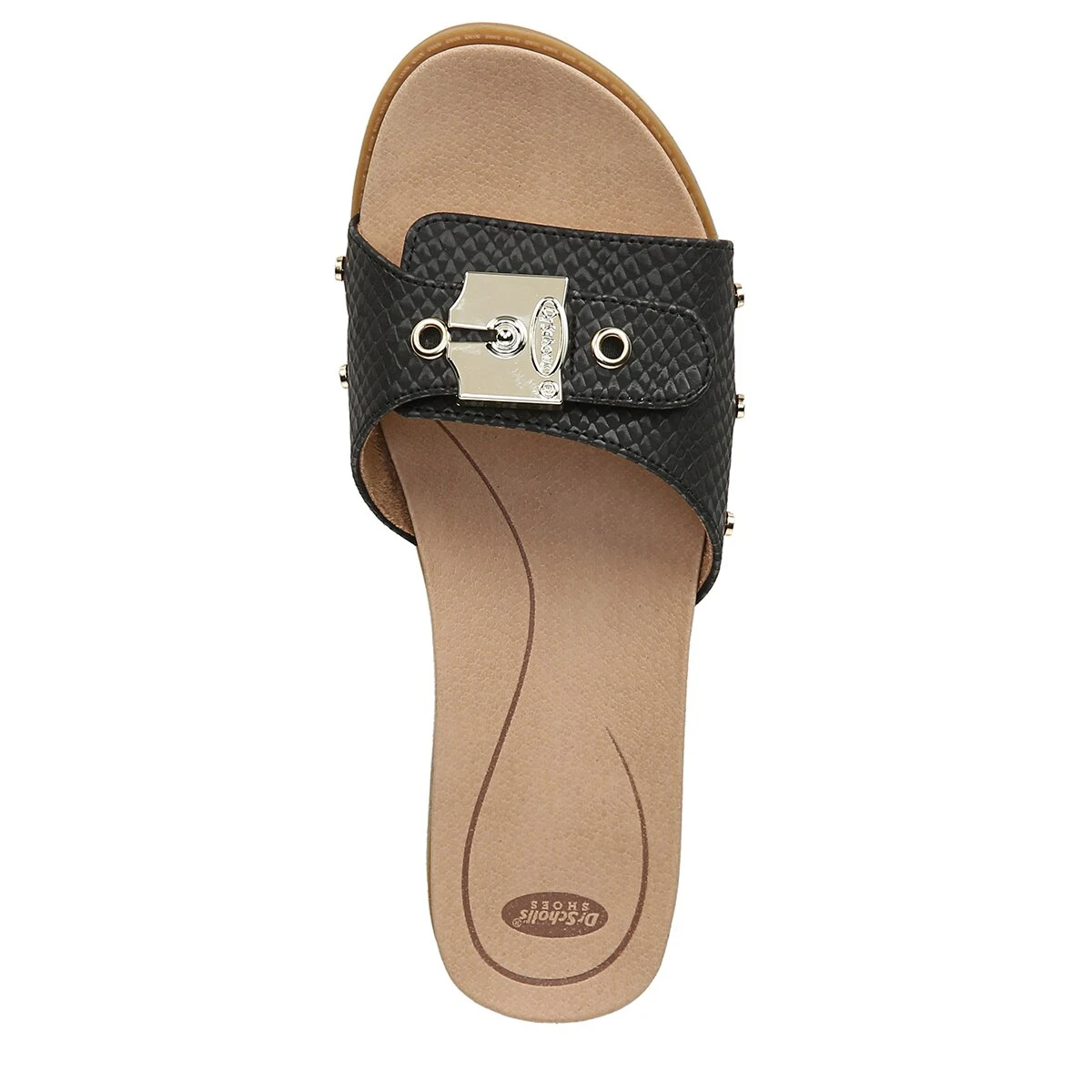 Fall in love over and over again with these timeless Dr. Scholl’s Originalist Slide Sandals. Features slip-on fit, signature buckle, and side nailhead accents.
