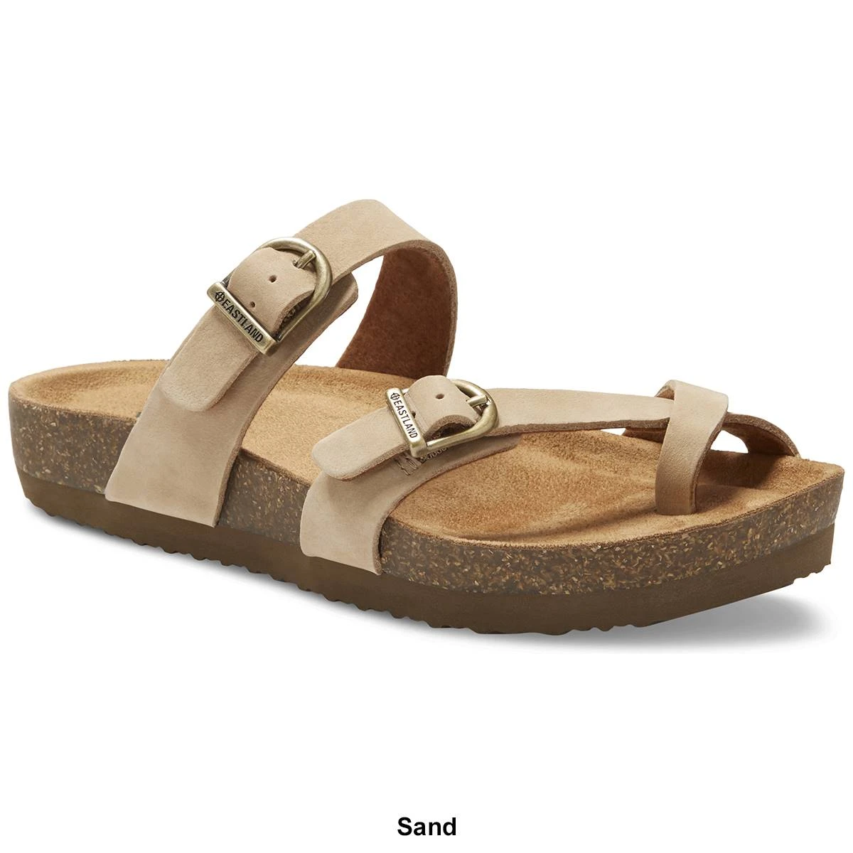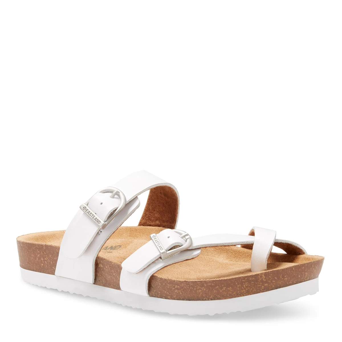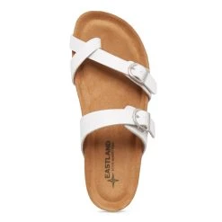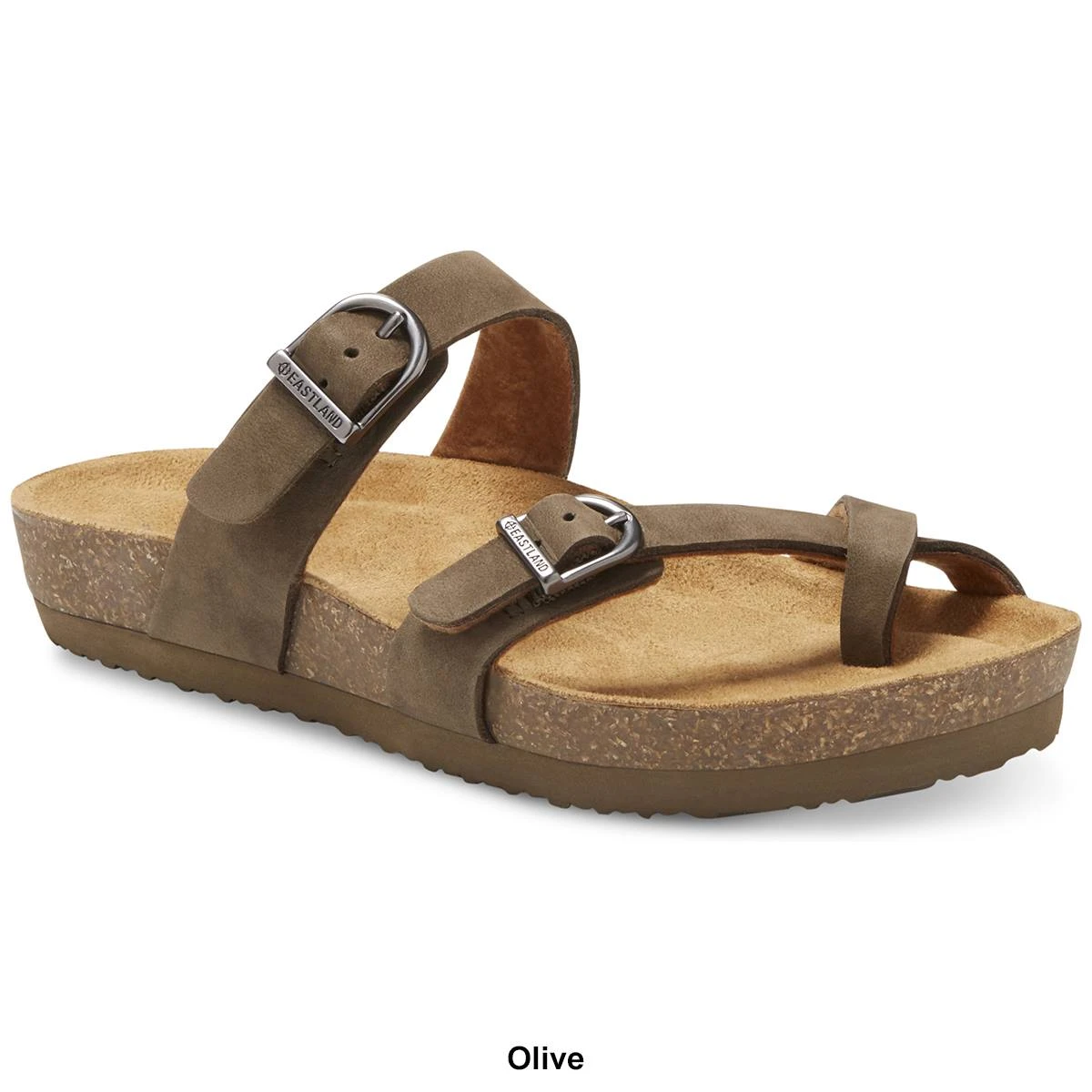 Enjoy easygoing style and comfort in these Womens Eastland Tiogo strappy slide sandals. Made of soft nubuck leather upper with soft fabric lining for barefoot comfort. The adjustable strap and buckles provide a custom fit with an exclusive Active Memory Foam comfort insole that supports and conforms to the curves of your foot and TPR and cork midsole with durable, shock absorbing EVA outsole.