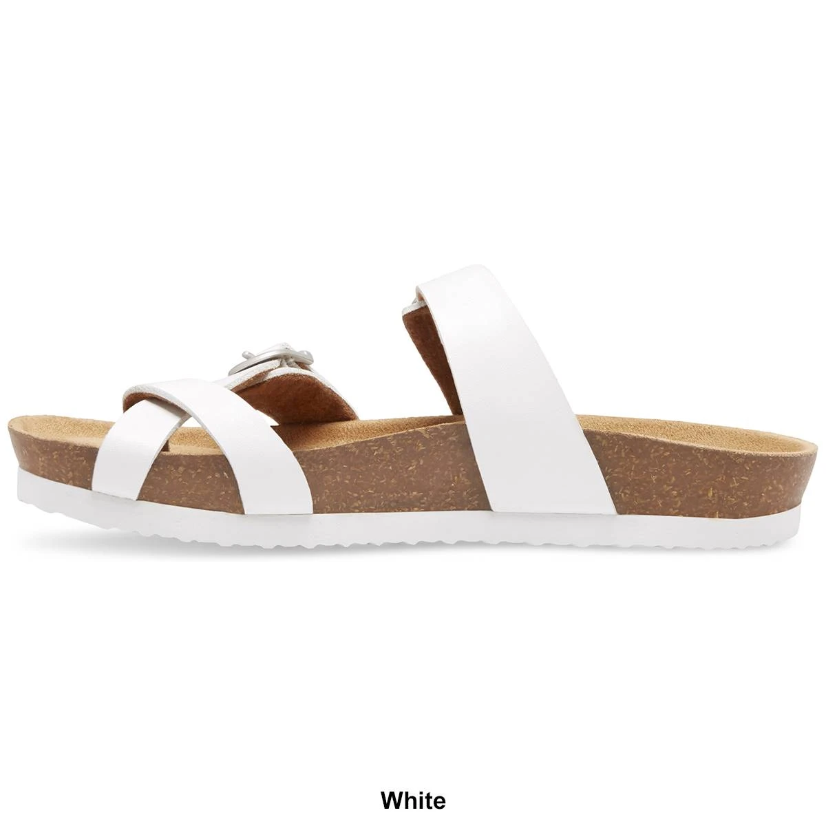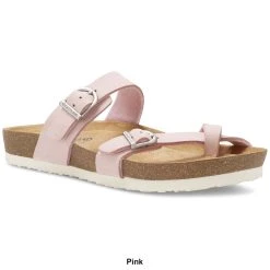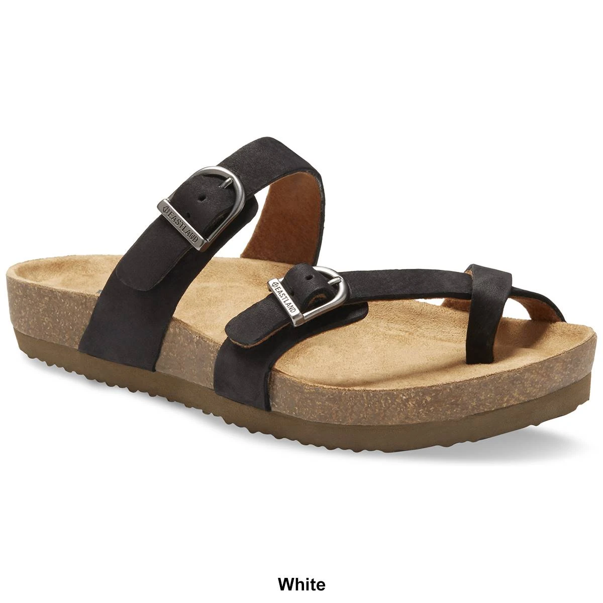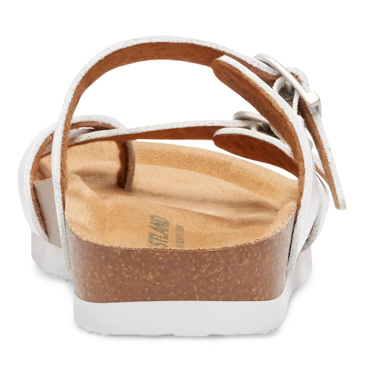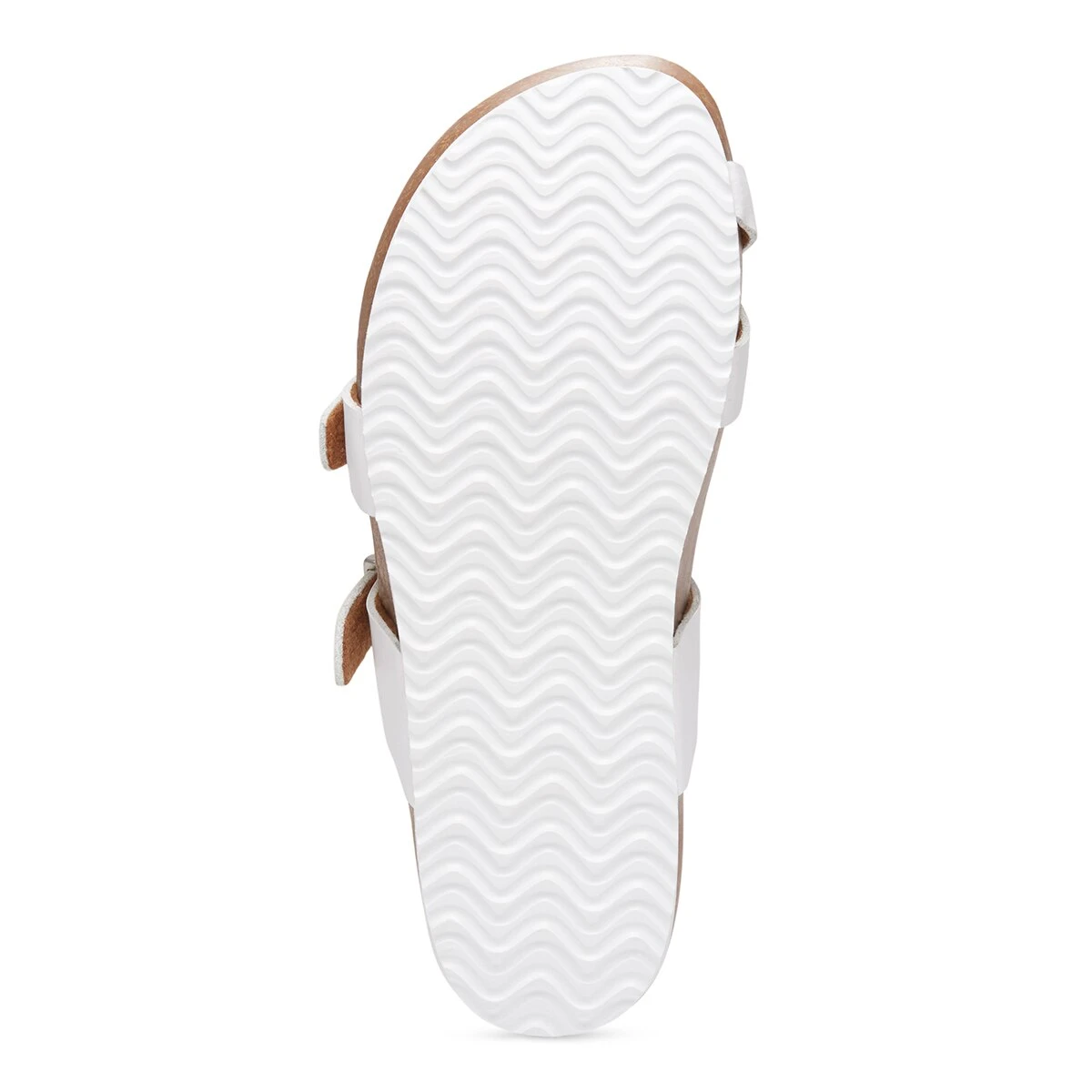 Enjoy easygoing style and comfort in these Womens Eastland Tiogo strappy slide sandals. Made of soft nubuck leather upper with soft fabric lining for barefoot comfort. The adjustable strap and buckles provide a custom fit with an exclusive Active Memory Foam comfort insole that supports and conforms to the curves of your foot and TPR and cork midsole with durable, shock absorbing EVA outsole.