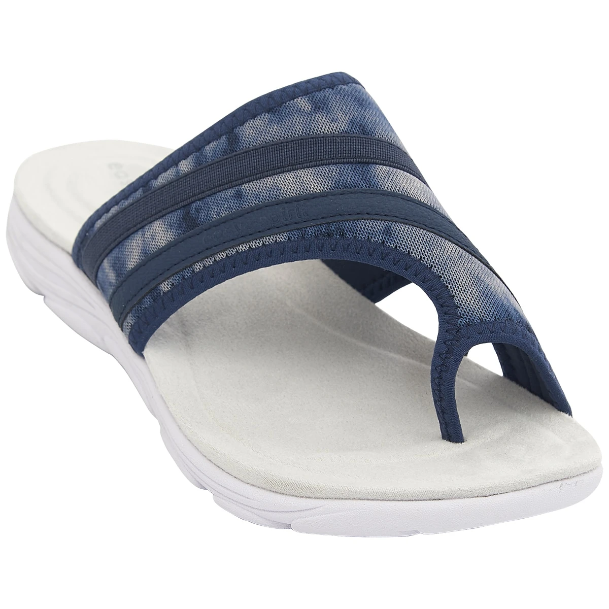 The Womens Easy Spirit Lola 2 comfort thong sandals are a lightweight and super comfortable shoe. The sandals feature a flexible design and a partial stretch upper for the right amount of give with every step. The rubber molded outsole provides comfort, durability, and superior traction to keep you moving in comfort.
