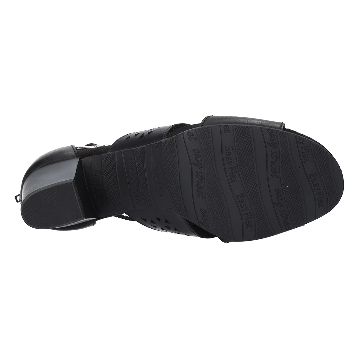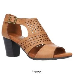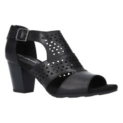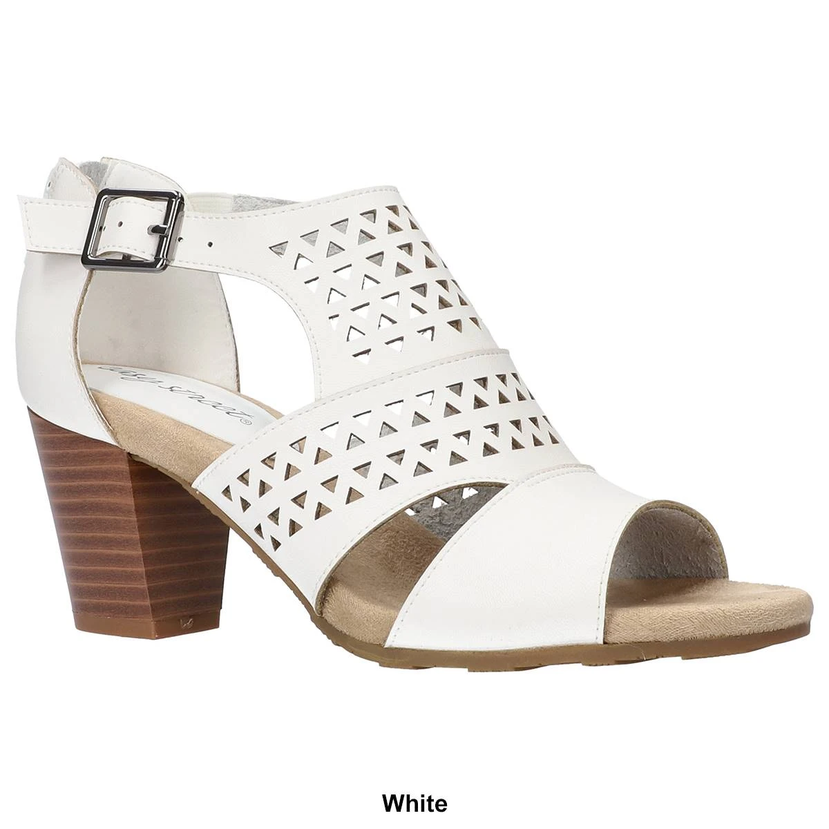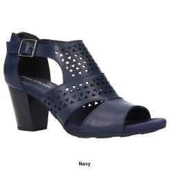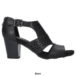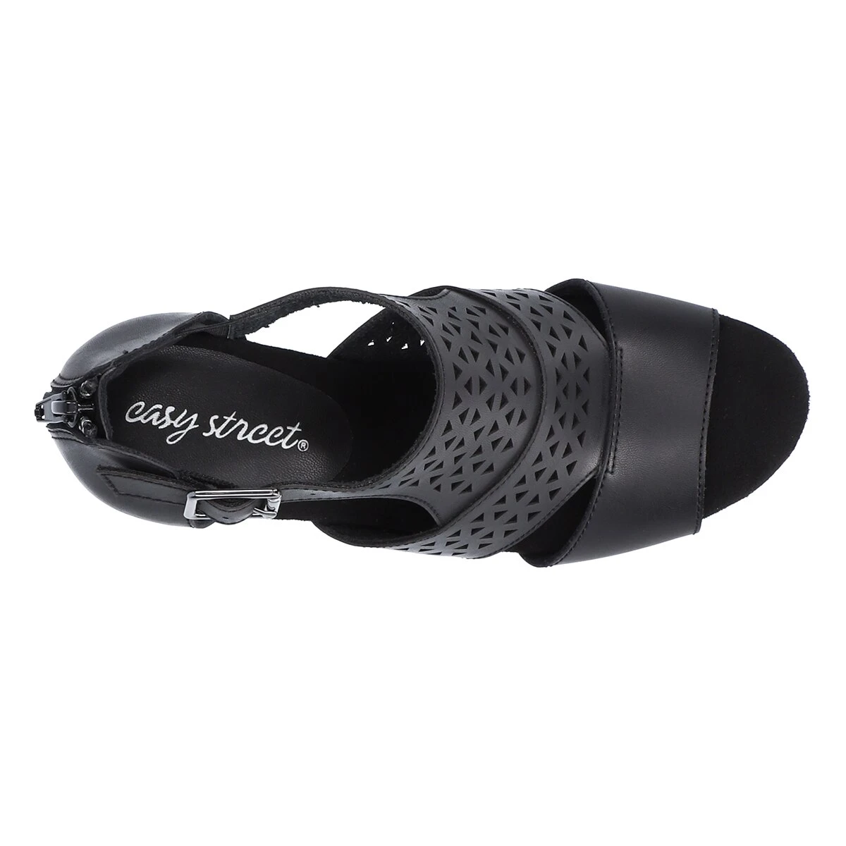 Step into these Womens Easy Street Adara contemporary strappy sandals and see all the styling potential this heeled sandal can bring to your wardrobe. The unique chop out design set upon an Easy Flex outsole and contemporary heel will have you walking comfortably on trend. The back zipper allows for an easy entry and the gored buckle will provide a more customizable fit.Heel Height: 2 1/2 inches.