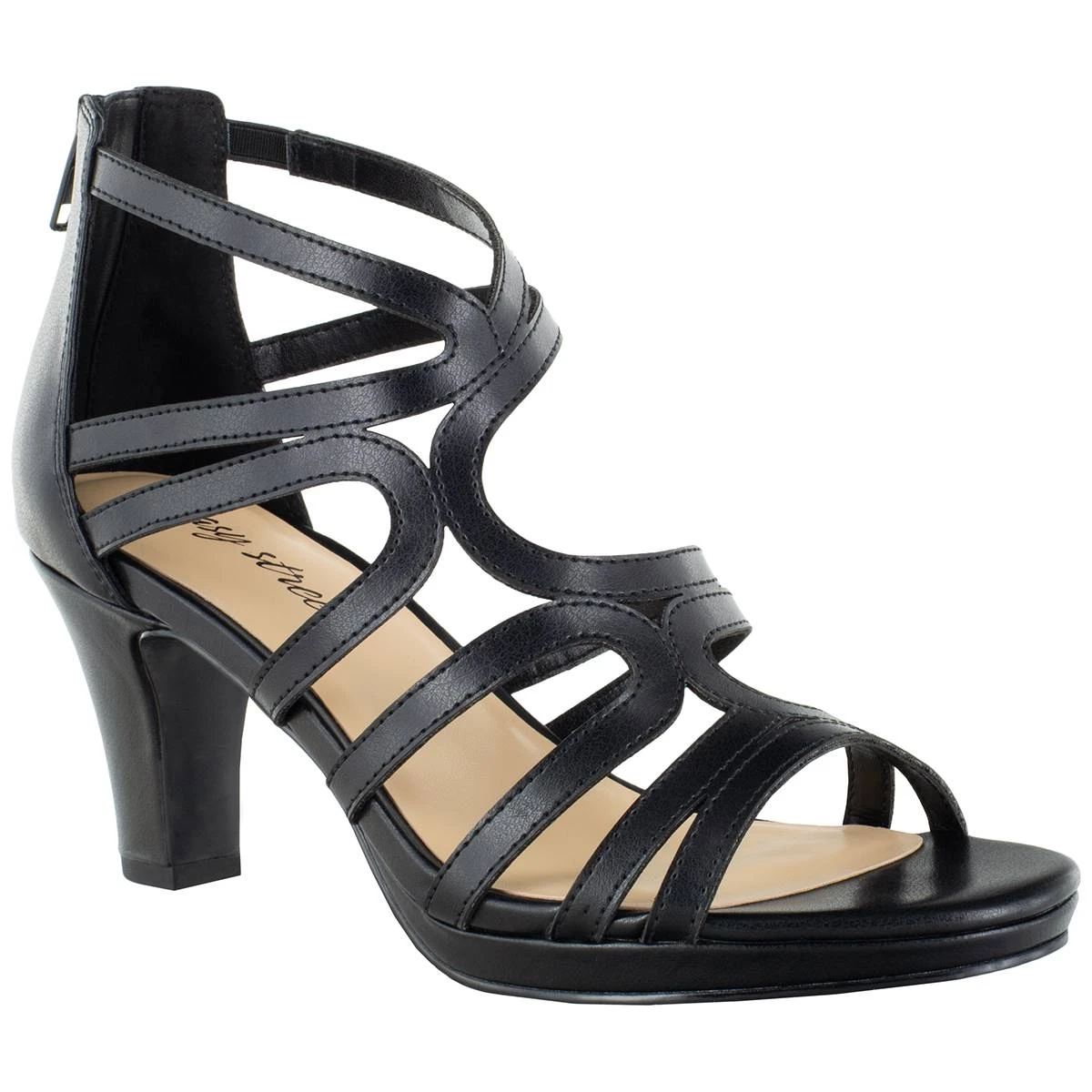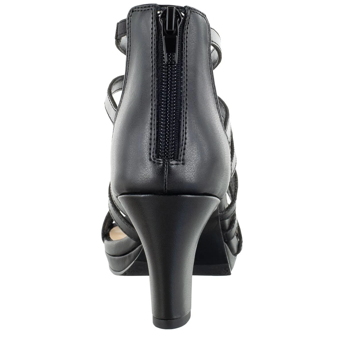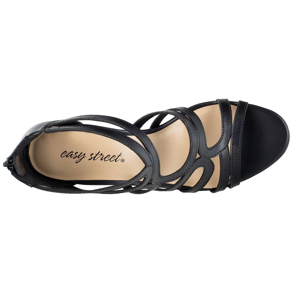 Fashion at it’s best, the Womens Easy Street Elated open toe glitter dress sandals are designed with a wearable platform and sexy strappy design. This style will give you the confidence to go out on the town, with a convenient back zipper, gored strap, and padded sock to ensure comfort and style all in one. These heels feature a synthetic lining, super soft padded insole, and easy flex outsole.Also available in Narrow and Wide Widths.
