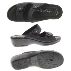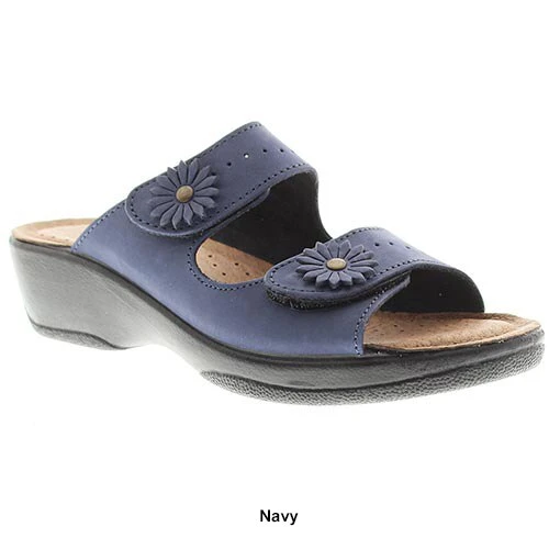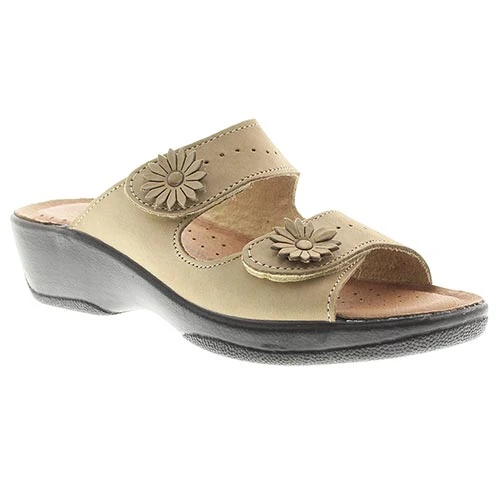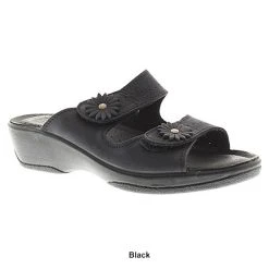 These Womens Flexus® By Spring Step Faithful slide sandals are a classic and sophisticated two-strap sandal with adjustable straps for a custom fit. They have genuine leather, anatomical cushioned insoles with a microfiber lining. They feature Nubuck uppers and polyurethane outsoles that are naturally shock absorbent with a mid-heel height. Made in Italy. Heel height: 1 3/4 inches.
