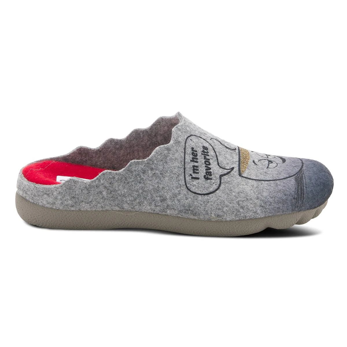 Don’t pick one when you can have both in these Womens Flexus® By Spring Step Fav Slippers. Featuring a coffee mug stating, “I am her favorite” and a wine glass arguing, “No, I’m her favorite.” Let the battle begin!