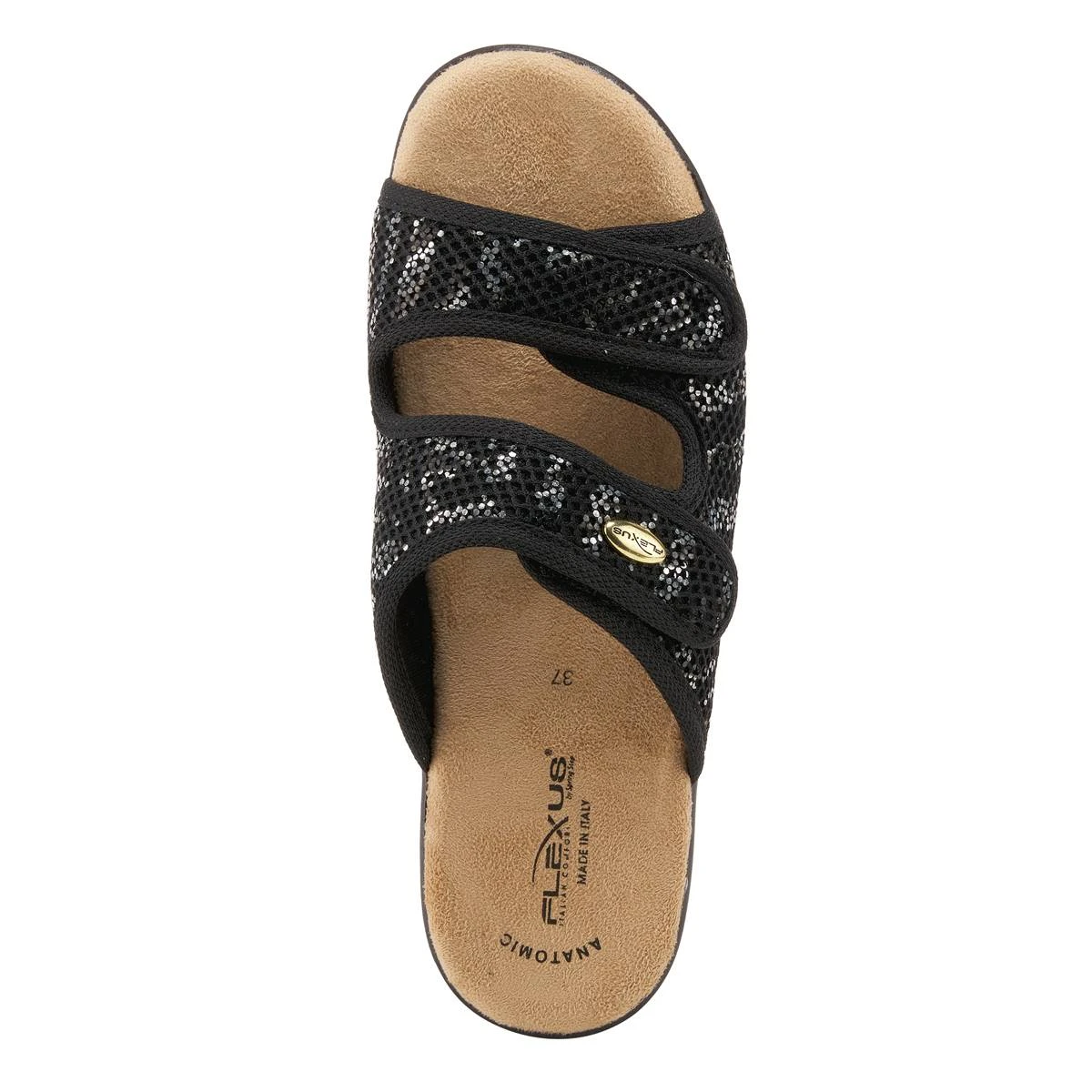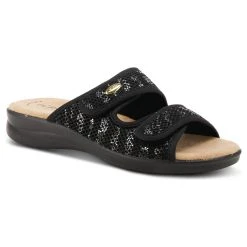 These Womens Flexus® By Spring Step Scala Slide Sandals are perfect for any activity. Features a fashionable mesh textile upper with a subtle touch of metallic, hook and loop closures on both straps for a customized fit.