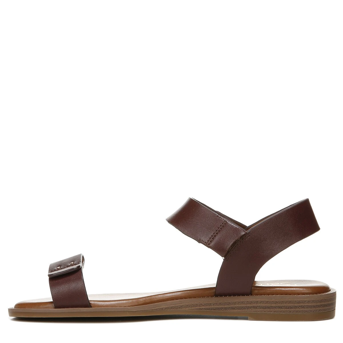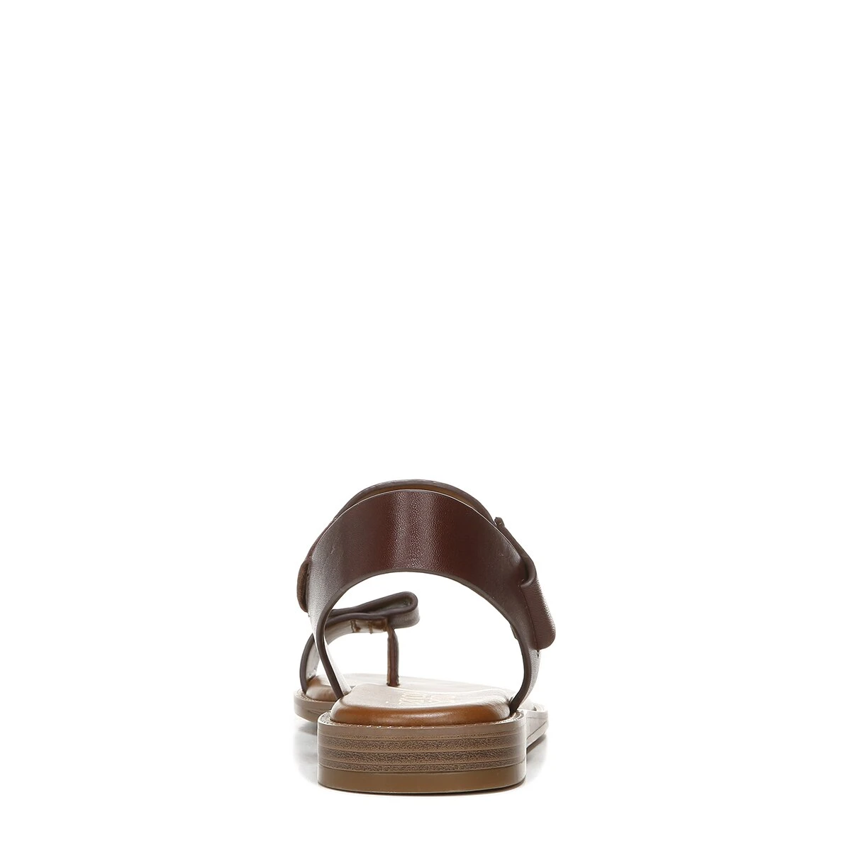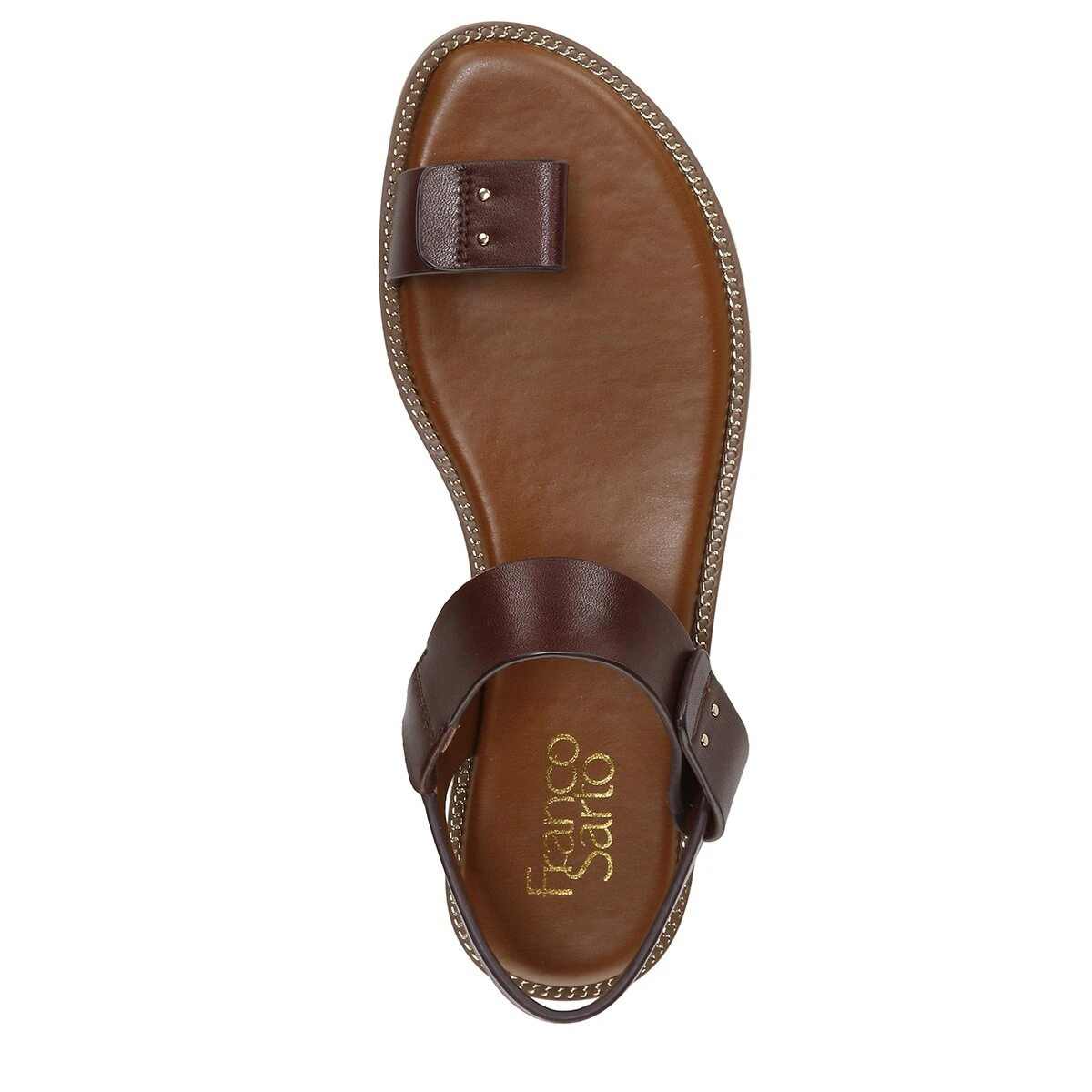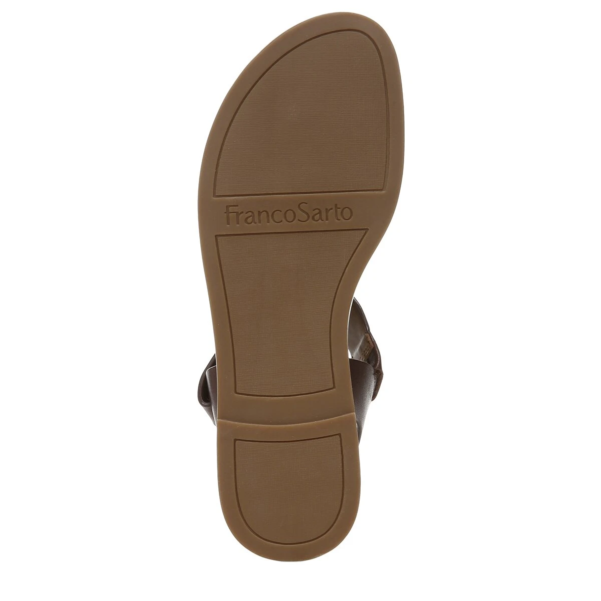 Less is more with these beyond chic Womens Franco Sarto L-Geranio sandals. They have a leather upper and a synthetic outsole. The flip flop sandals feature an open toe with toe ring detail, metallic accents, an adjustable strap, stacked heel, and a soft sustainable eco-conscious lining for comfort.
