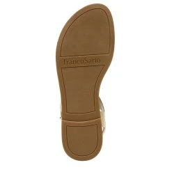On rotation. You’ll wear these breezy Womens Franco Sarto L-Glenni sandals over and over again. They have a leather upper and a synthetic outsole. The flip flop sandals feature an open toe, knotted toe post, an adjustable strap with hook-and-loop closure, metallic accents, and a stacked heel.Also available in Wide Widths.