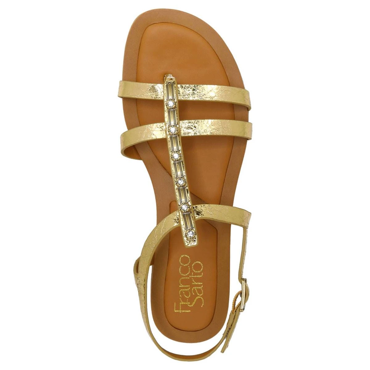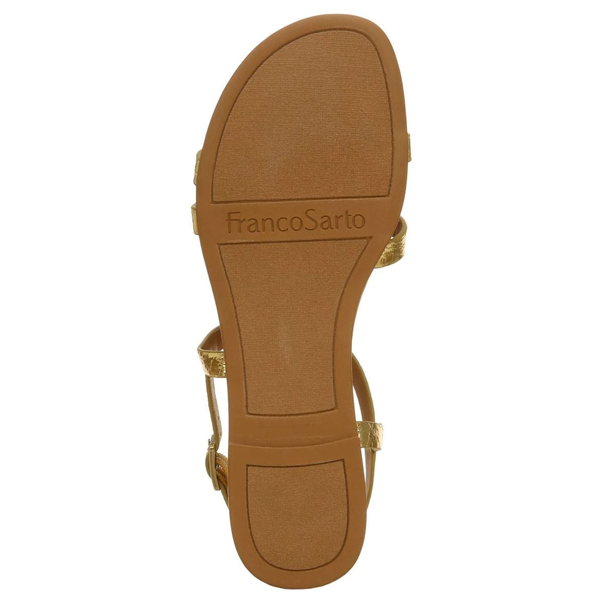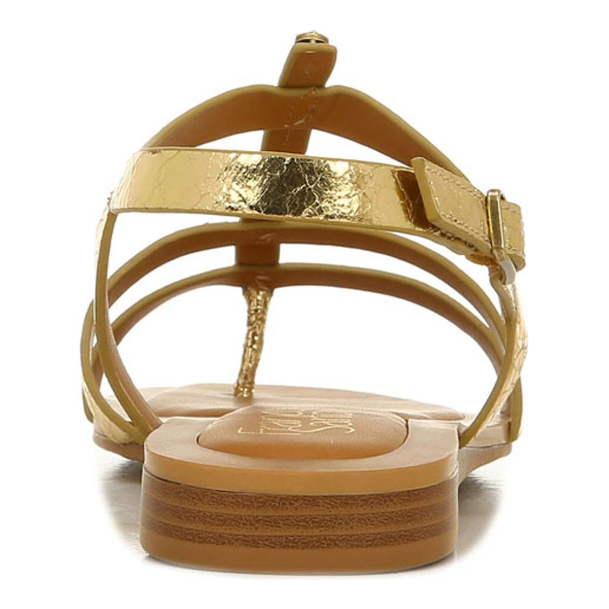 These gladiator-inspired Womens Franco Sarto L-Greca gold strappy sandals are perfect for warmer days. They feature a heel strap with adjustable buckle closure for a comfortable and versatile fit.