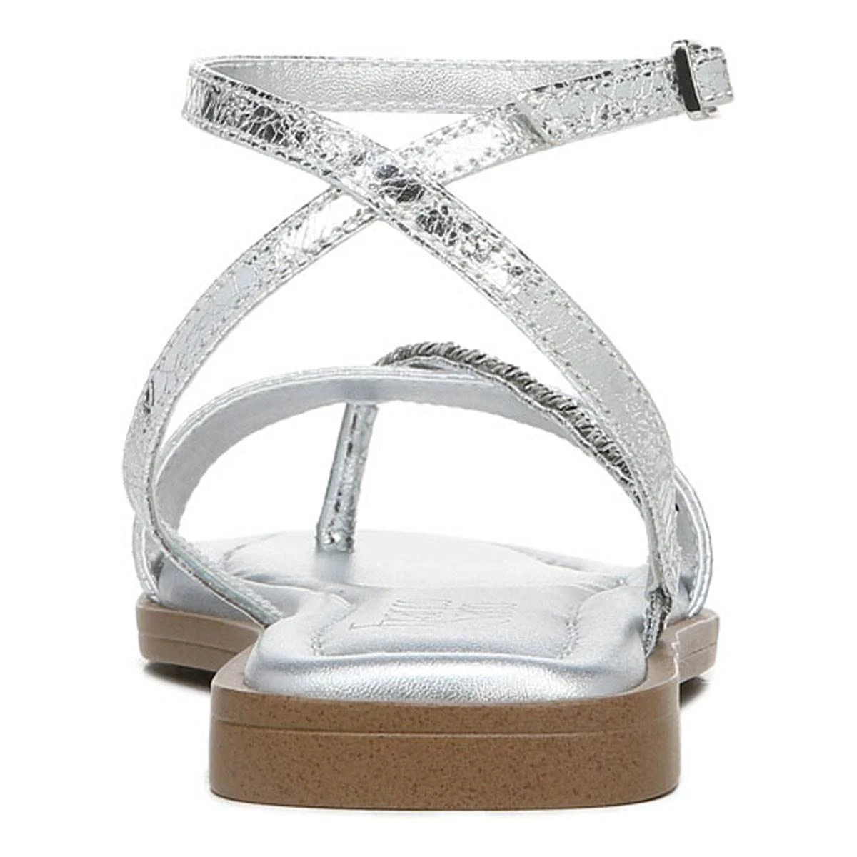 These Womens Franco Sarto L-Mela flat strappy sandals are crafted to stand out in the sun. They will look chic anywhere and everywhere. Features ankle strap with adjustable buckle for a versatile and comfortable fit.