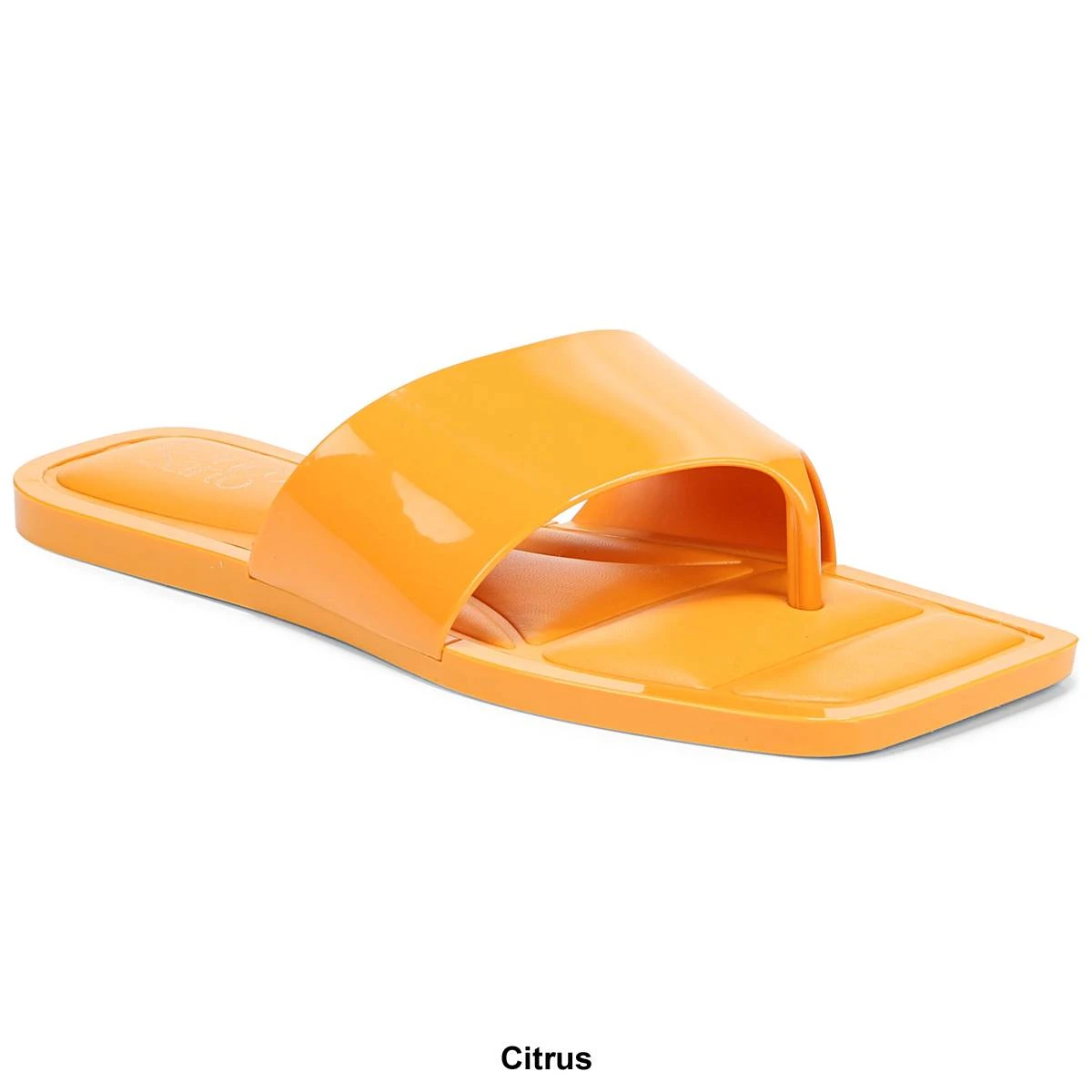 These bright and playful Womens Franco Sarto L-Sorrento jelly thong sandals transport you to a beachside Italian destination with every step. They feature a slip-on fit with a toe thong post, open square toe, and padded footbed.