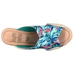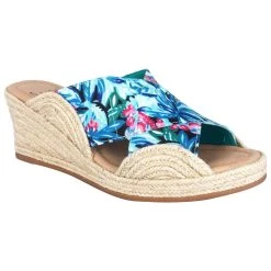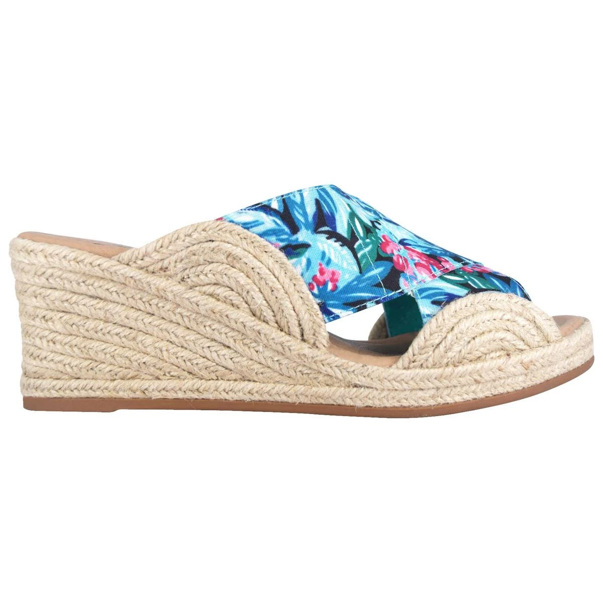 A new twist on the classic espadrille, these Womens Impo Normi Tropical Print Espadrille Wedge Sandals are set on a braided jute platform with standout wave-inspired rope details. This pair rocks oversized crossover elastic vamp straps to create a unique and versatile warm-weather beach sandal. Slide these on with your favorite swim set, or slouchy knit tank and pleated midi skirt.