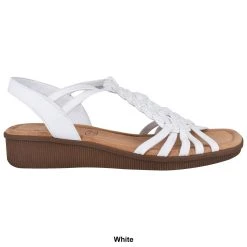 For an elevated leisure-wear style that offers comfort and stretch, slip on these Womens Impo Rosette Stretch Strappy Solid Sandals. The sandal features a braided stretch elastic upper, a trendy square toe, and heel, a softly padded memory foam footbed, and a new ribbed rubber unit bottom.