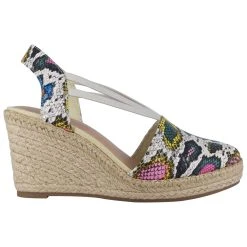 An elevated riff on a warm-weather classic, these Womens Impo Taedra Stretch Wedge Snake Print Sandals work equally well by the beach or in the city. A closed-toe vamp, stretch elastic straps, and a slip-on-and-go backstrap is set atop a jute-wrapped platform wedge. This is one of the hottest-looking sandals of the season.