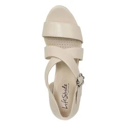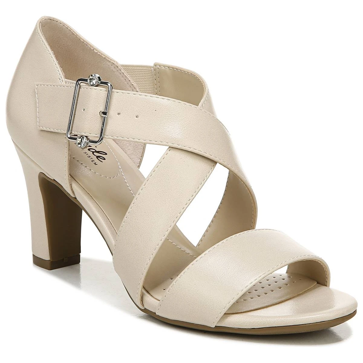 Count on these Womens LifeStride Carlyle strappy sandals to make an entrance everywhere you go. Features faux leather upper with an open toe, adjustable buckle closure, inside stretch gore, and strappy design. Insole and heel counter partially crafted with recycled materials. The Soft System® comfort package provides all-day support, flex, and cushioning.