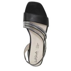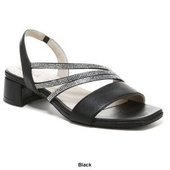 It’s your time to shine. Elevate your evening wear with these Womens LifeStride rhinestone-accented dress strappy sandals. Faux leather upper with a square toe, heel sling strap with stretch gore panel, and rhinestone-accented straps. Insole board partially crafted with recycled materials. Soft System® comfort package provides all-day support, flex, and cushioning. Secret Cushion™ insole with a hidden full-length cushioned footbed for 24/7 heel-to-toe comfort. Just Right Height 1 and 1/4 inch block heel.