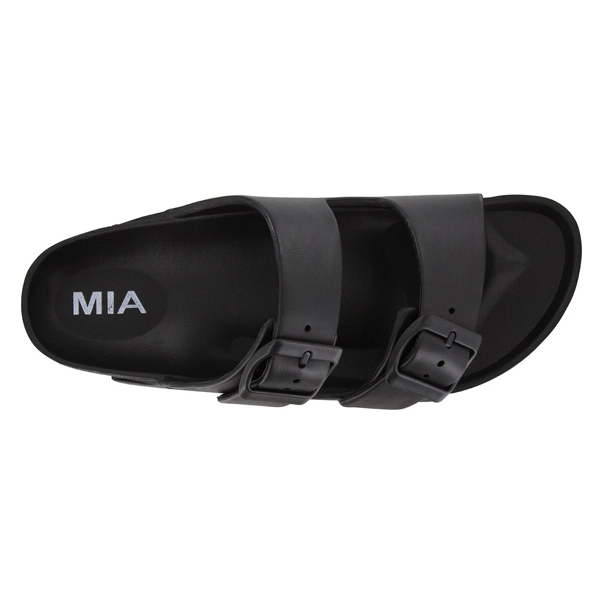 Make looking and feeling great a simple task in these Womens Mia Jasmin sandals. The slide-on footwear fashion offers dual buckled straps and an open-toe design.