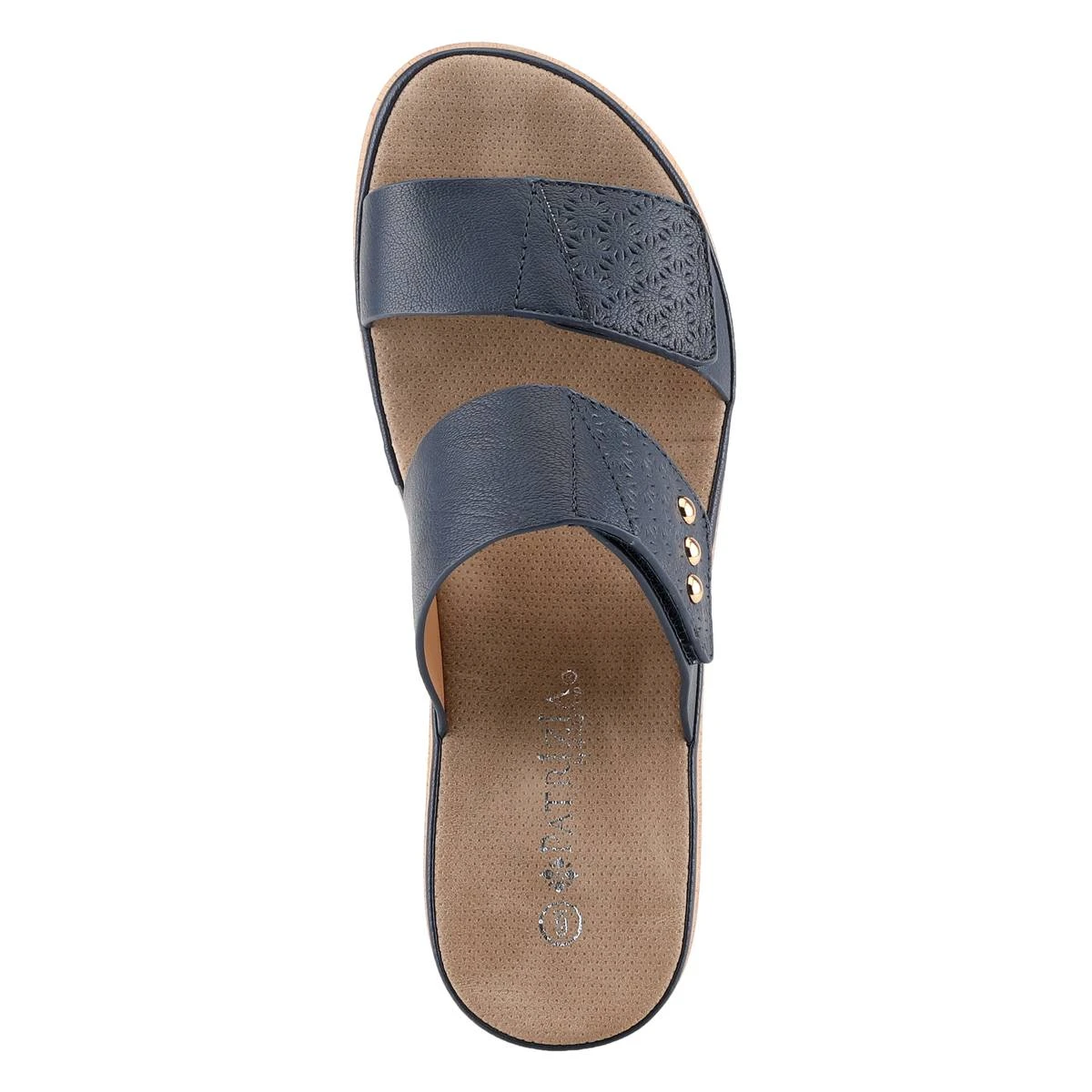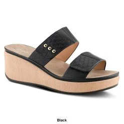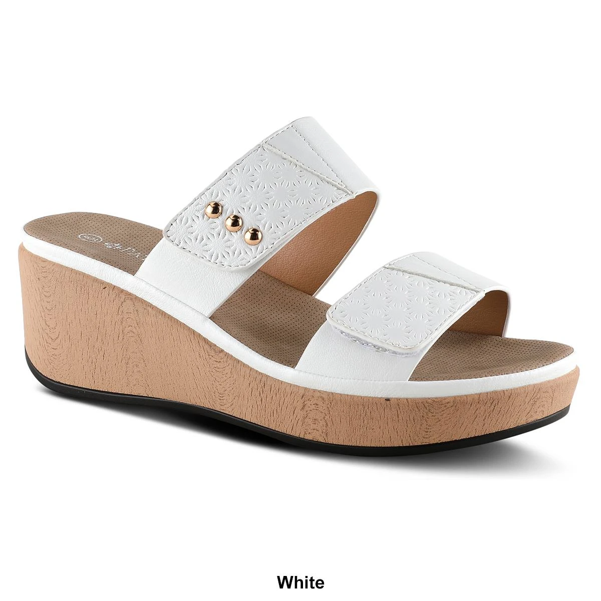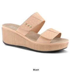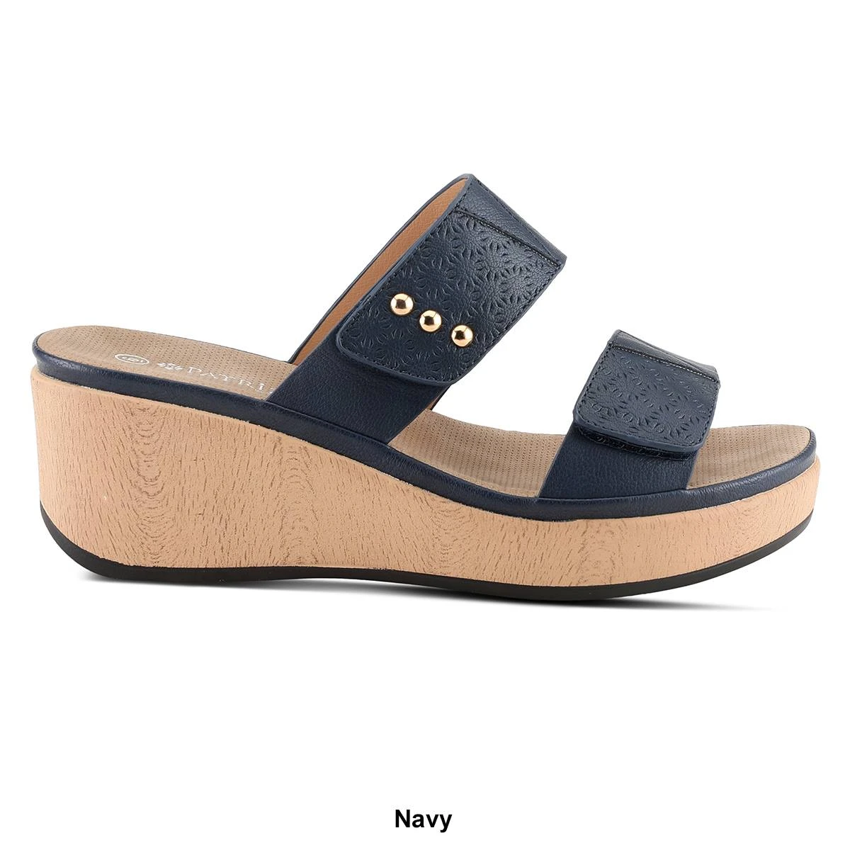 These Womens Patrizia Carol Slide Sandals pair well with any outfit. Features a flower embossed, hook and loop adjustable on a featherweight, wood-like wrapped wedge.