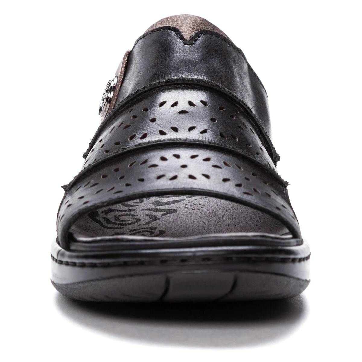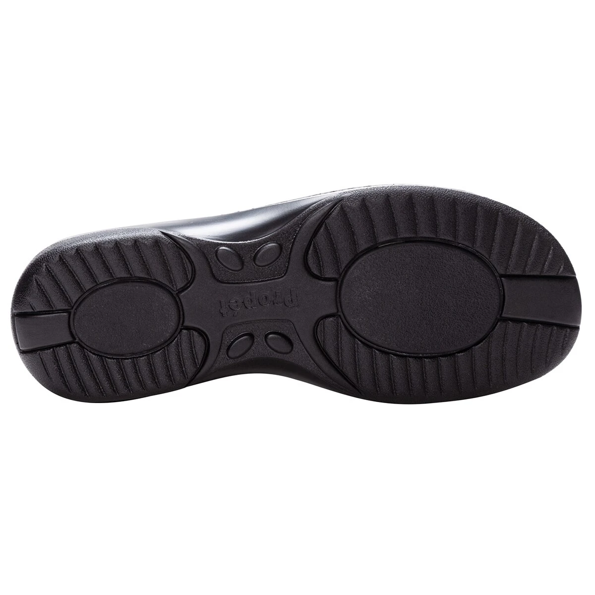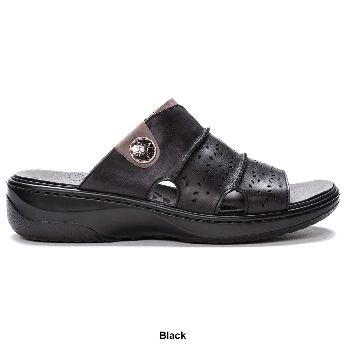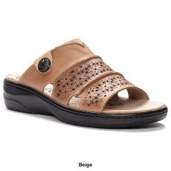 Ease into comfortable style with these Womens Propèt® Gertie slide sandals. They have a leather upper and a rubber outsole. The slides feature a laser-cut vamp with medallion embellishment, an open round toe, extra-cushioned removable PU insole footbed with microfiber sock lining, and lightweight cushioning PU with rubber inserts for traction.Also available in Wide Widths.