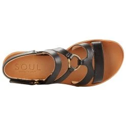 Take your looks to a whole new level in these Womens SOUL Naturalizer Stellar strappy sandals. Dual straps let you get the personalized fit you want in an everyday style. Features a round, open toe, adjustable hook-and-loop closure, adjustable top strap, metallic ornamentation, all-thru comfort soft foam lining, arch support with memory foam, antimicrobial sock lining, and lightweight and flexible outsole.