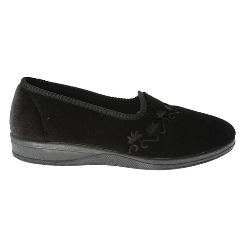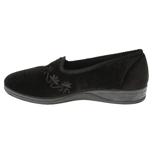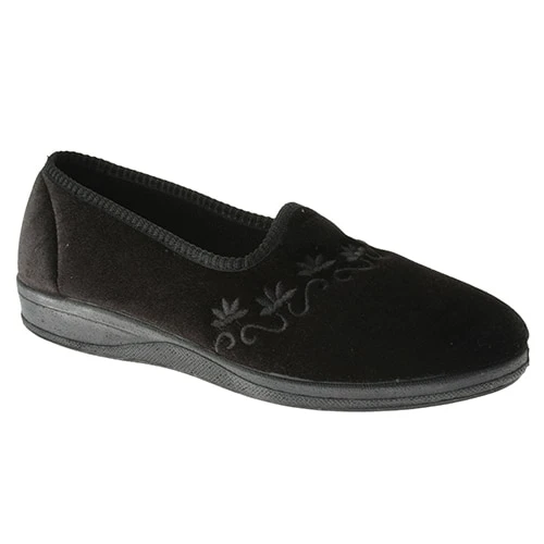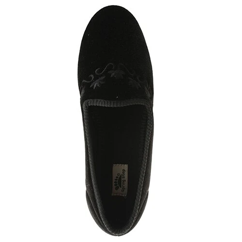 These stylish and casual Womens Spring Step Jolly slippers feature a high quality textile upper with gorgeous floral embroidery. It has a soft, comfortable insole, and good traction on tile and wood floors.